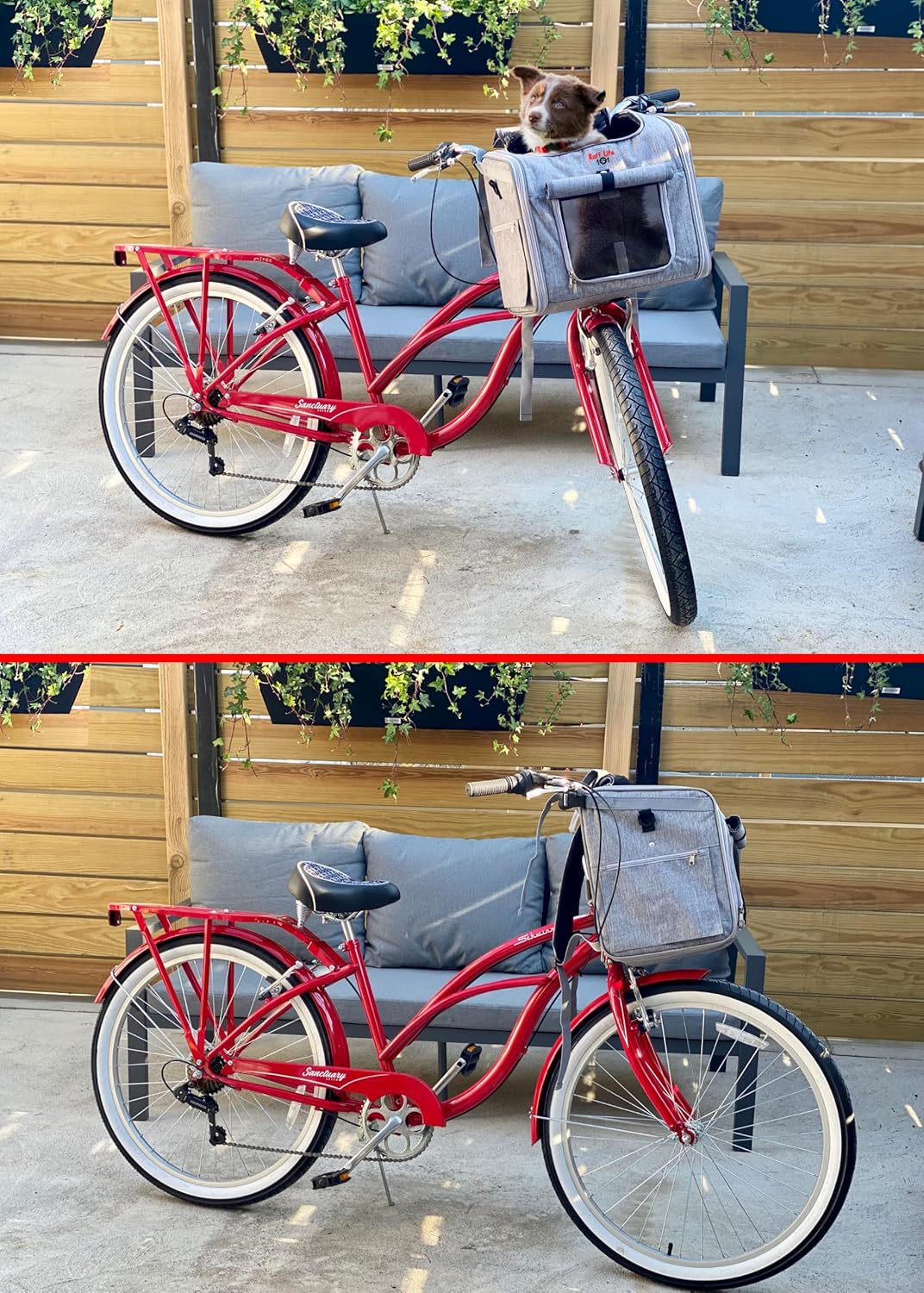 • BREATHABLE AND COMFORTABLE: The bike basket is also equipped with a soft, washable pad that provides a comfortable resting place for your pet, while 4 mesh windows allow for plenty of ventilation to keep your pet cool on warm days.