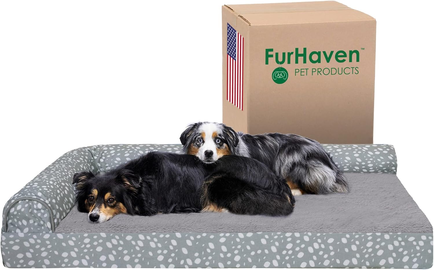 Furhaven Cooling Gel Dog Bed for Large Dogs w/ Removable Bolsters & Washable Cover, For Dogs Up to 125 lbs - Plush & Almond Print L Shaped Chaise - Gray Almonds, Jumbo Plus/XXL