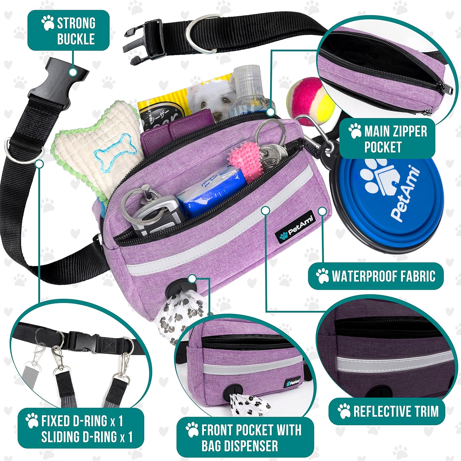 - PURPLE DOG LEASH GIFT FOR DOG OWNERS: PetAmi waterproof waist belt bag with reflective dog leash set is a perfect choice. Whether you enjoy walking, jogging, or hiking with your furry friend, this leash makes for an ideal gift for dog dad, dog mom, dog parents on any occasions like Christmas and birthdays. Our shock absorbing dog jogging leash belt leash features with poop bag dispenser and pet kits storage, it gives ultimate convenience for both dog owner and dog.