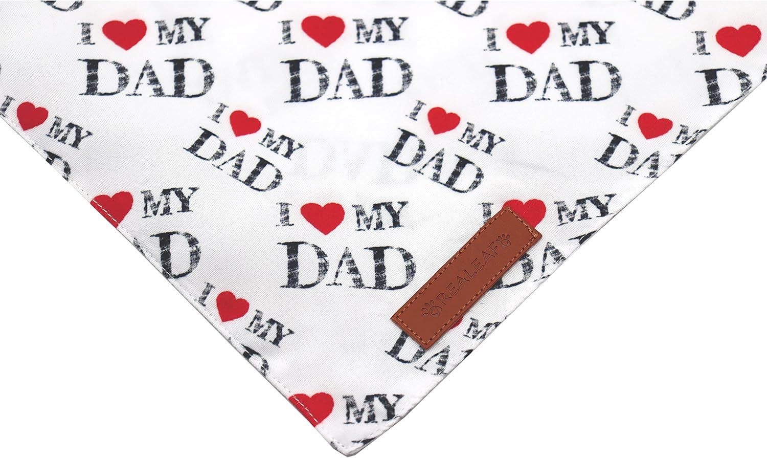 Realeaf Fathers Day Dog Bandanas 2 Pack, Reversible I Love My Dad Pet Scarf for Boy and Girl, Premium Durable Fabric, Bandana for Small Medium Large and Extra Large Dogs (X-Large)