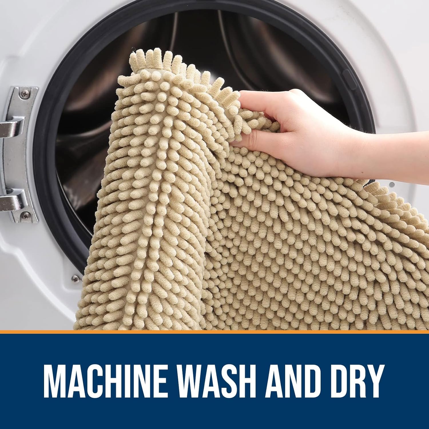 OLANLY Dog Door Mat for Muddy Paws 30x20, Absorbs Moisture and Dirt, Absorbent Non-Slip Washable Doormat, Quick Dry Chenille Mud Mat for Dogs, Entry Indoor Entryway Carpet for Inside Floor, Beige