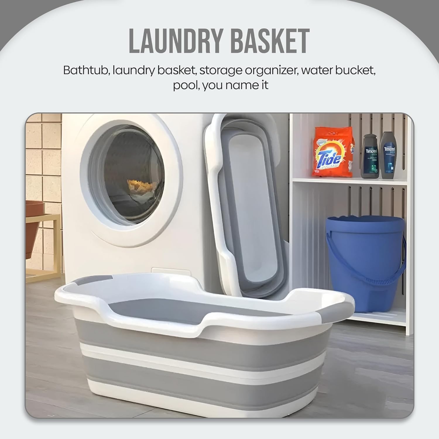 - MULTIPURPOSE: Not just a collapsible dog bath tub, it's a laundry basket, storage organizer, water bucket, pool, you name it, it collapses to fit anywhere