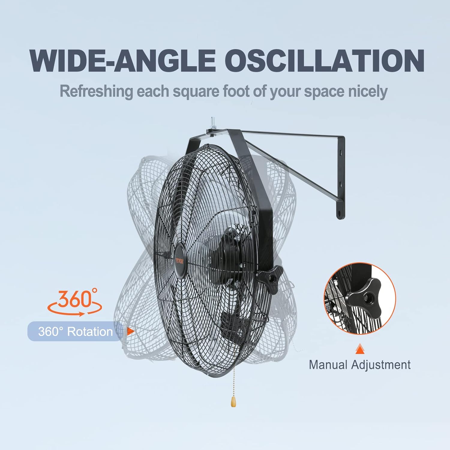 • Adjustable Wall Mounted Fan: Get ready to reach every corner of the room! The 18'' weatherproof wall fan can be tilted vertically for optimum airflow. Get ready for a complete heavy-duty metal construction with aluminum blades for easy disassembly and cleaning.