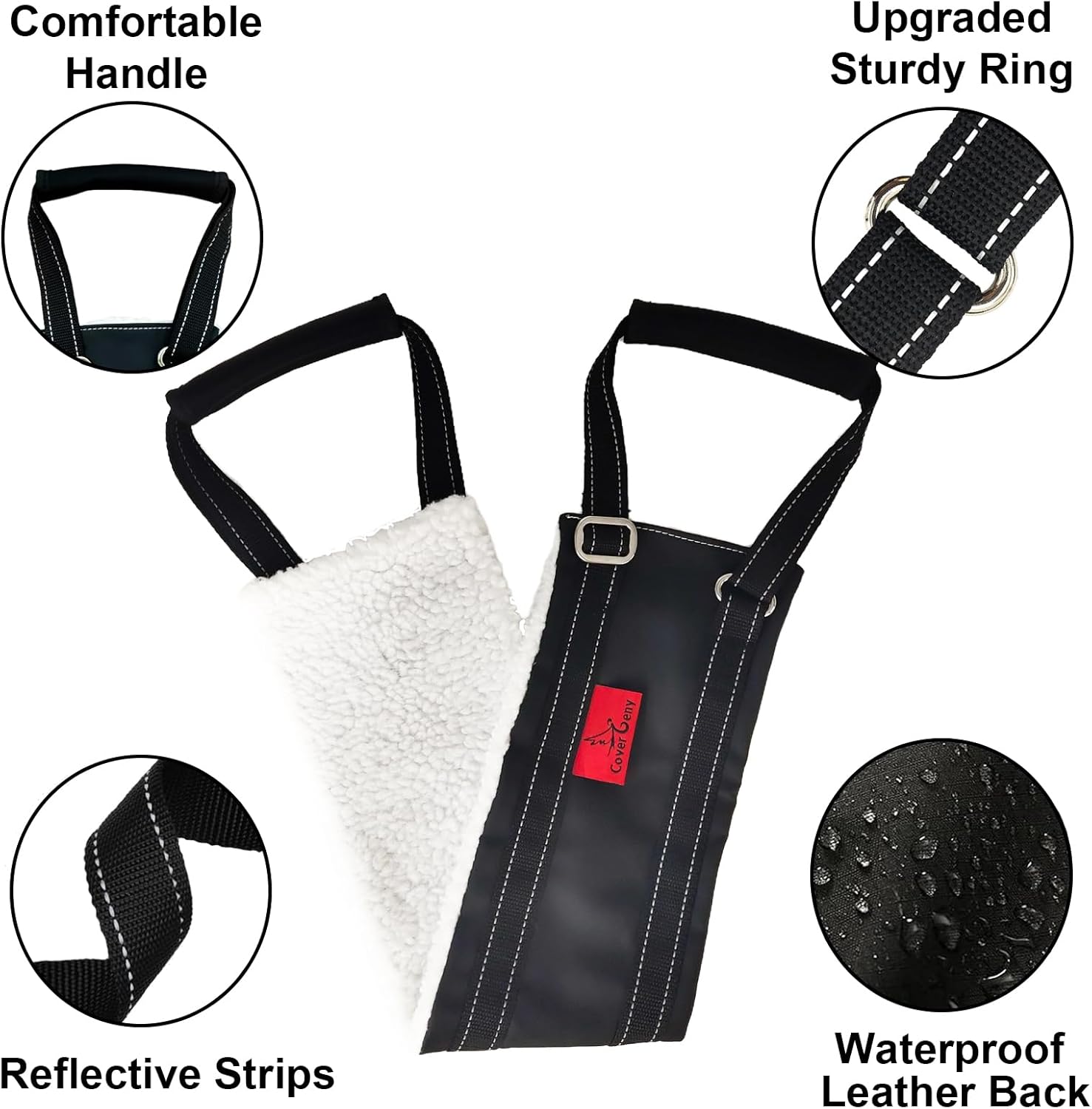 • Easy to use and store: place the harness under the dog's belly with the fleece lining touching their belly, and adjust the webbing as needed. It can be easily folded for portability when not in use.