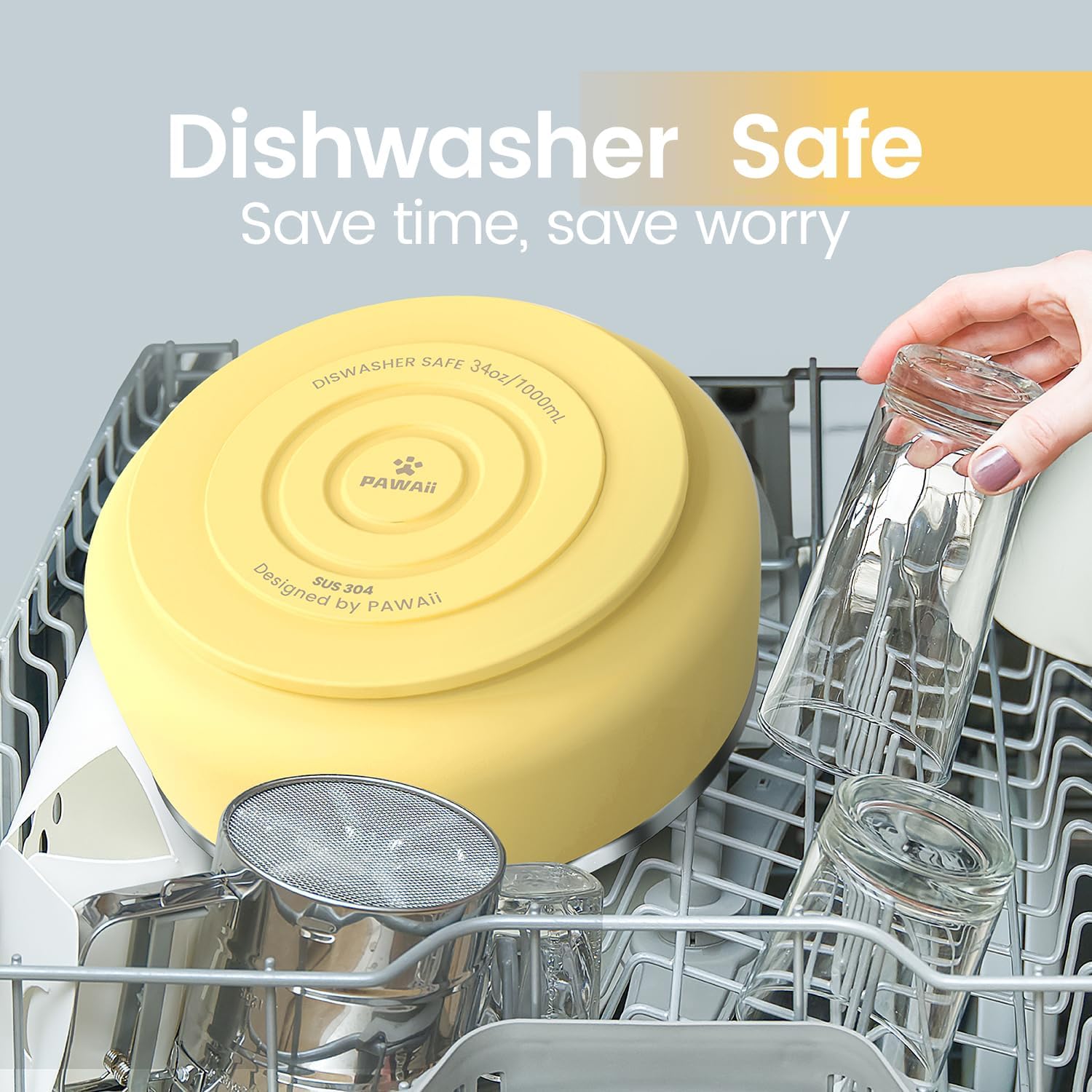 • š€ š›š«šžšžš³šž š­šØ šœš„šžššš§: You can wash this dog feeder in a dishwasher or manually. Pawaii stainless steel dog bowl repels oil, does not hide dirt, and can be cleaned by simple flushing.