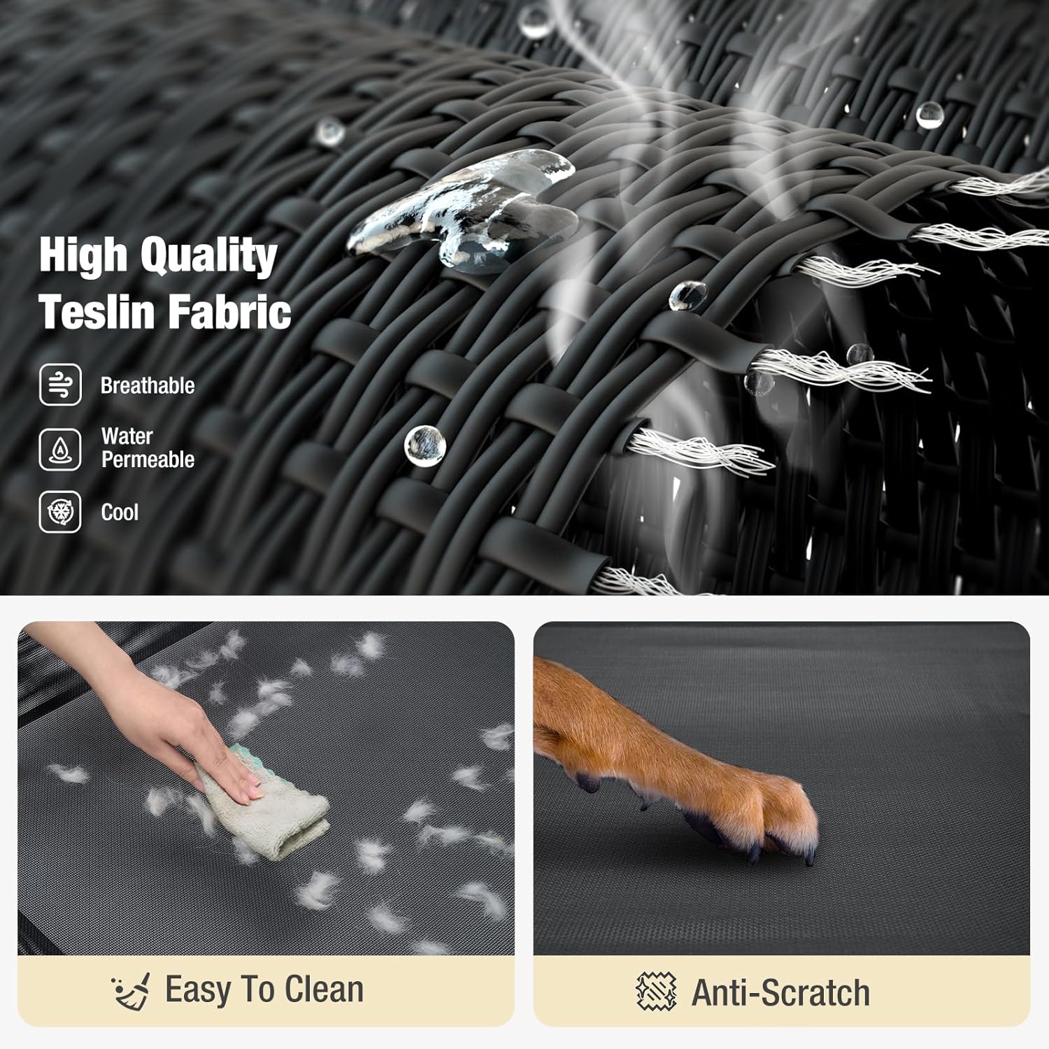 • All-Season Comfort: The Teslin Mesh mat not only allows the air to flow, but also allows the water to penetrate, keeping your pet cool in summer; The elevated dog bed lifts your dog 8.2 inches off the hard ground, mud or wet grass, alleviating joints pressure and keeping health