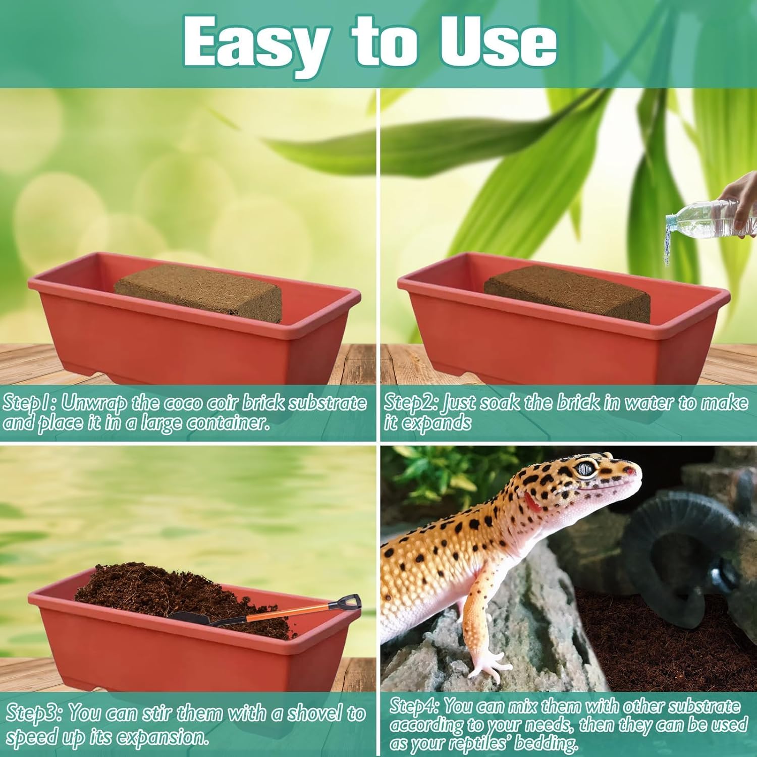 - š¦ šµšššššš š¶šššššš šŖšššššš ššššš ššš š³šššššš š®ššššš: Halatool's leopard gecko substrate contains two 7.87"x3.94"x1.97" bricks (1.4lb each) of pure coconut husk fiber - enough to fill a 4.2-gallon terrarium. This organic, reusable bedding is cleaned with no dirt or foreign substances, providing the safest leopard gecko bedding for sensitive reptiles