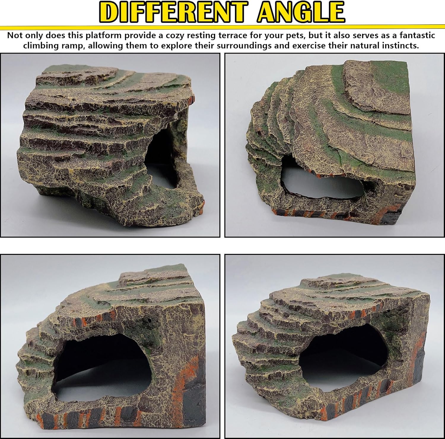 • 【PLAY AND REST】Your reptiles get a natural opportunity to hide or play, satisfying a healthy desire for coolness, privacy and protection; Provides and elevated platform for your pet to bask and warm up.