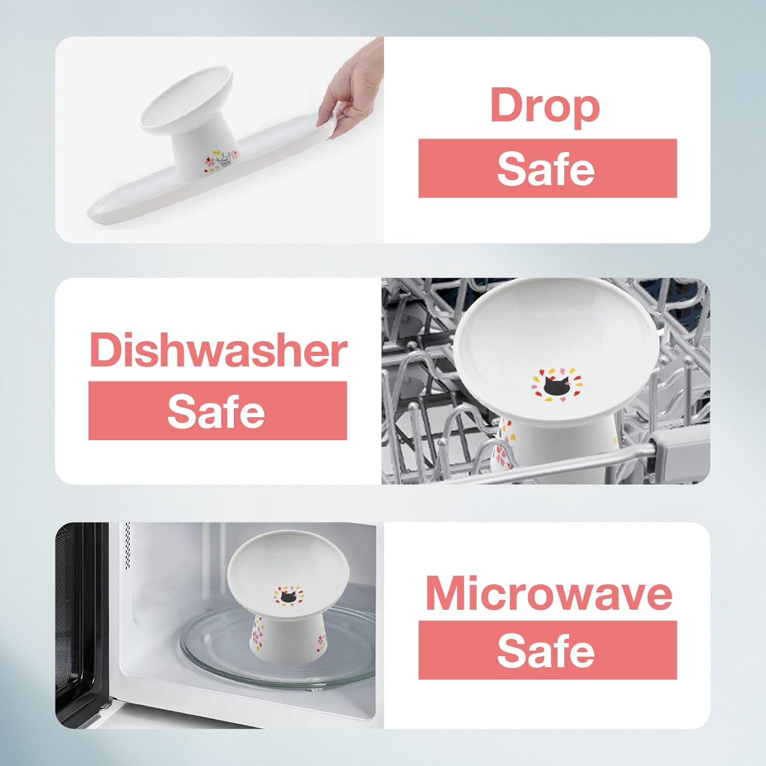 Necoichi Extra Wide Raised Cat Food Bowl, Elevated Cat Bowls to Prevent Neck & Whisker Fatigue, Dishwasher and Microwave Safe, No.1 Seller in Japan! (Sakura Limited Edition, Extra Wide Tilted)