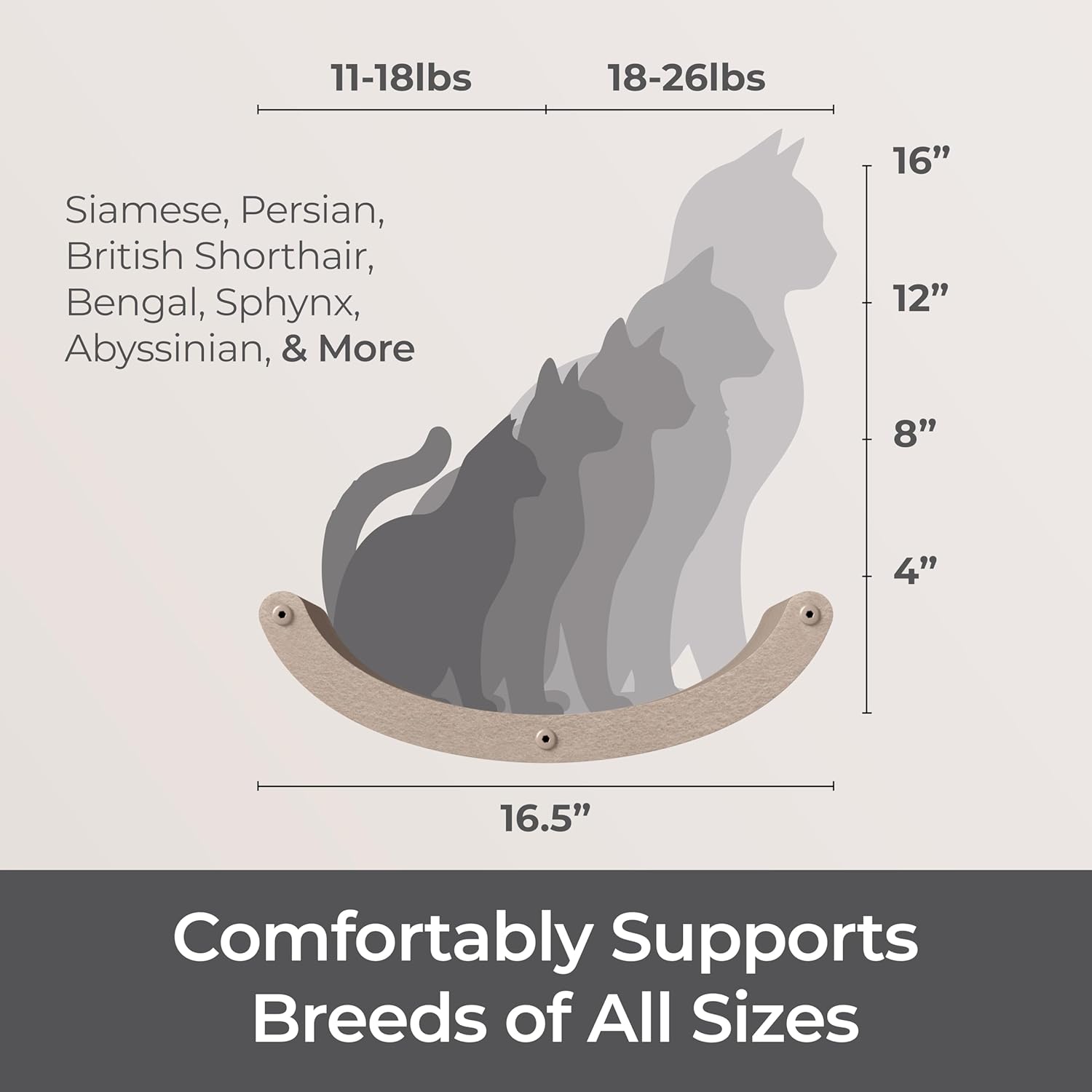 - Pawsitive Impact: Our wall mounted cat furniture is crafted with recycled P.E.T. felt materials, creating a strong, tactile and anti-slip felt to endure daily use. Our patent-pending design offers irresistible softness, perfect for face rubs and head bumps.