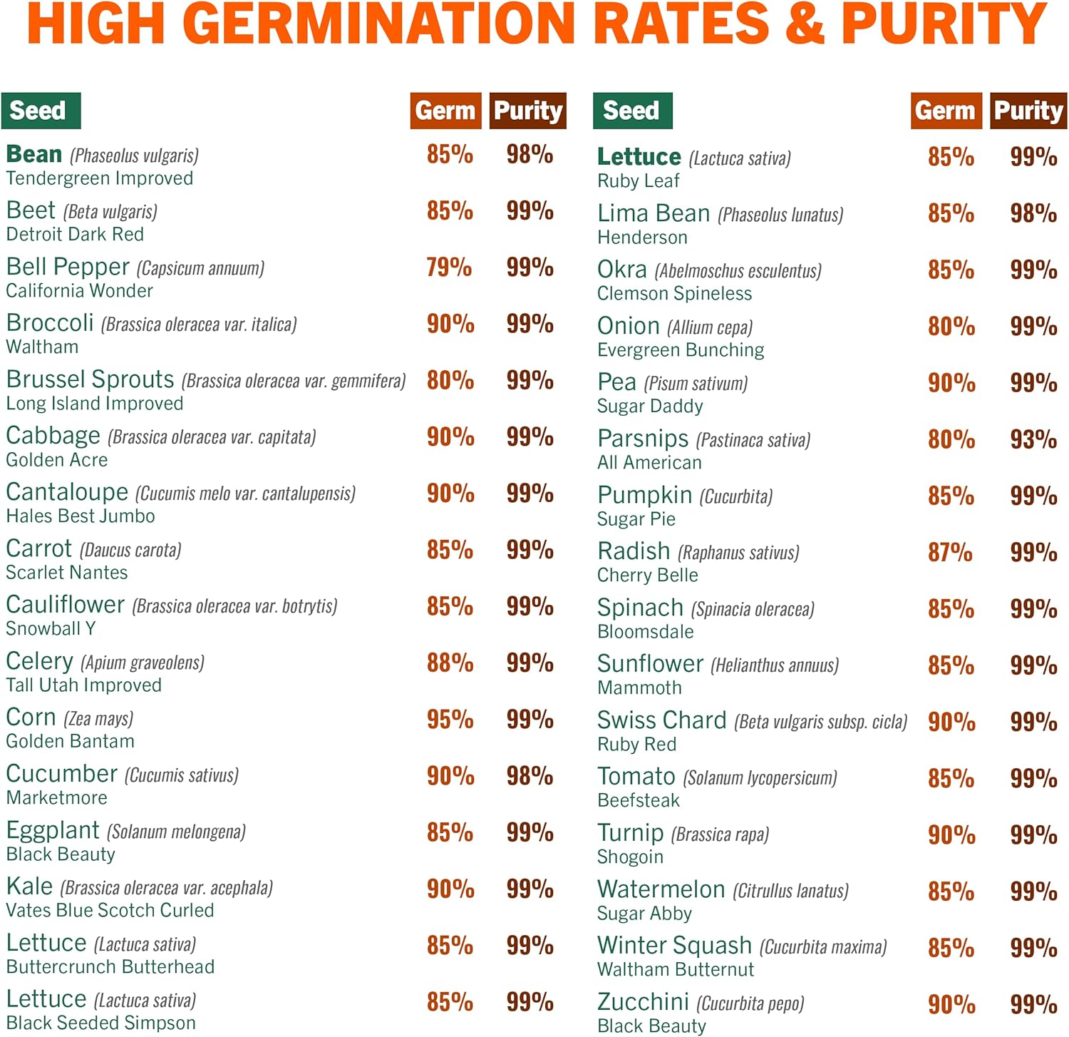 - Garden Seeds For Planting Vegetables: High germination rates; stored in an air-tight, moisture-proof resealable bag for long-term; suitable for emergency, survival situations, or everyday gardening