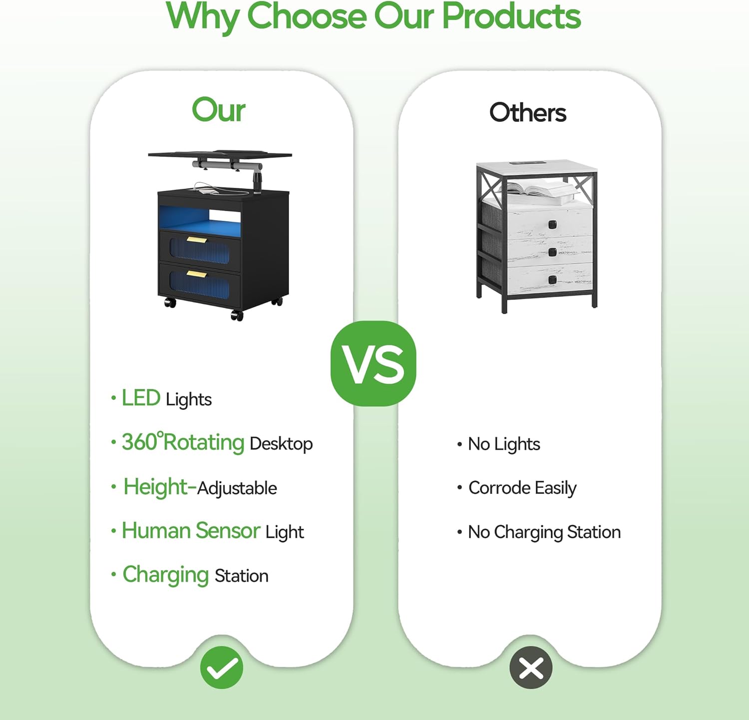 - ✅【Nightstand with Wireless Charging Station】 Bedside table with wireless charging and USB/Type-C charging ports allows you to easily charge your mobile devices, laptops and iPads, making your life easier when you work in bed or on the sofa.