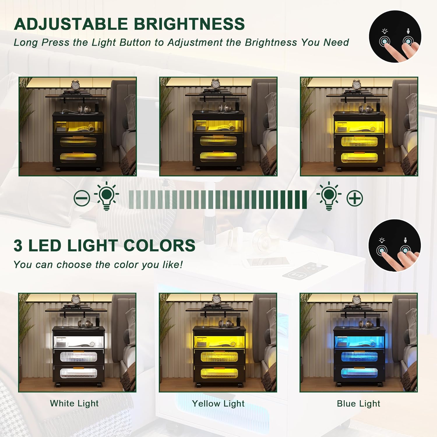 - ✅【Sensor 3-Color Light】 The bedside table light can be set to automatically sense-turn on automatically when approaching, and turn off automatically when you leave; you can also set the manual button to switch the light. The light has three colors: white/blue/yellow!