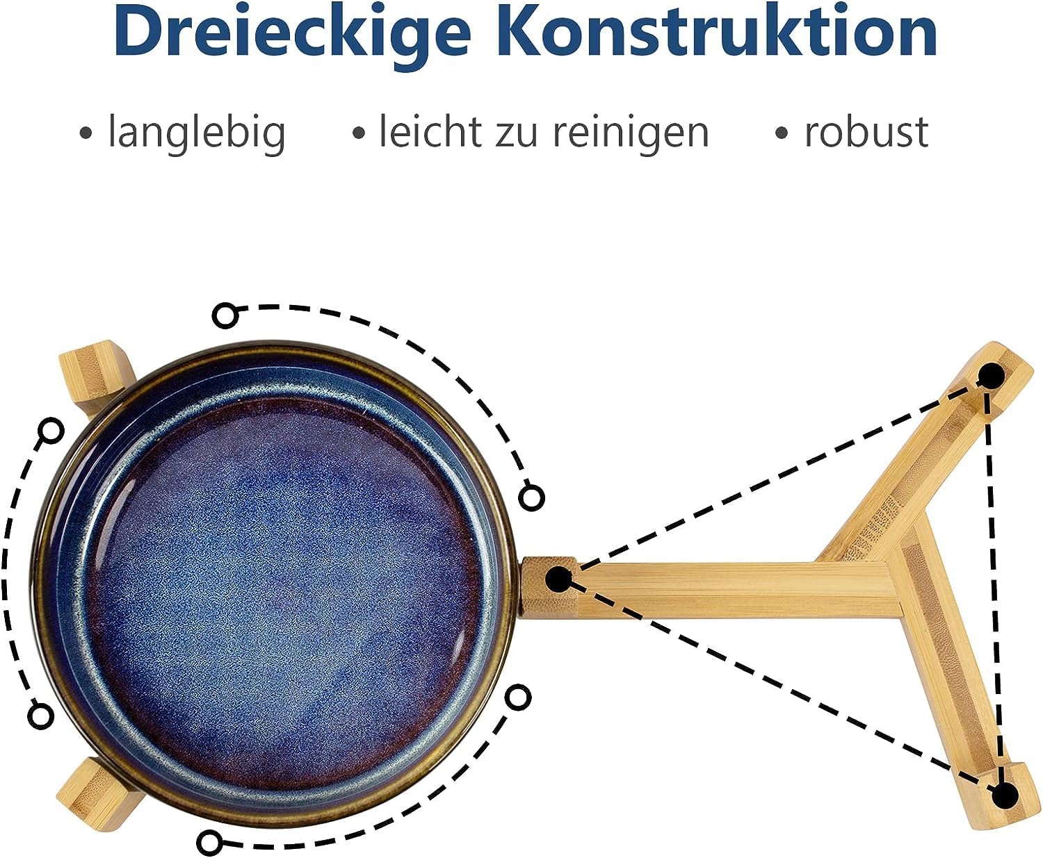 • [Double Bowl Design]:One dog bowl for food and one for water, Each ceramic cat bowl has a Unique wooden stand, raising the dishes closer to your pet for more comfortable eating