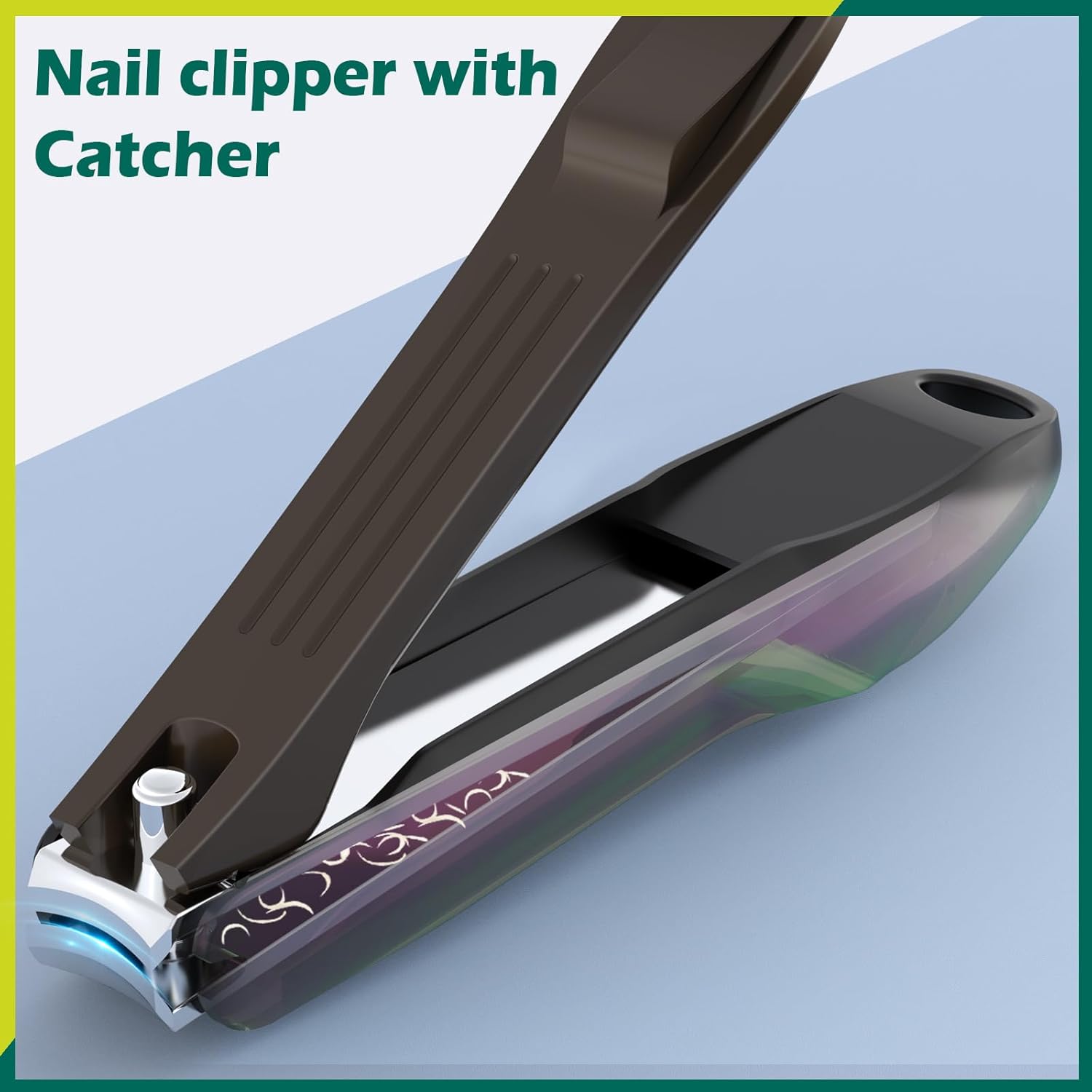 GLAMFIELDS Nail Clipper with Catcher, 3 Pack No Splash Fingernail Toenail Clipper,Slanted Edge Nail Clippers Stainless Steel Nail Cutter Nail Trimmer, Good Gift for Men and Women