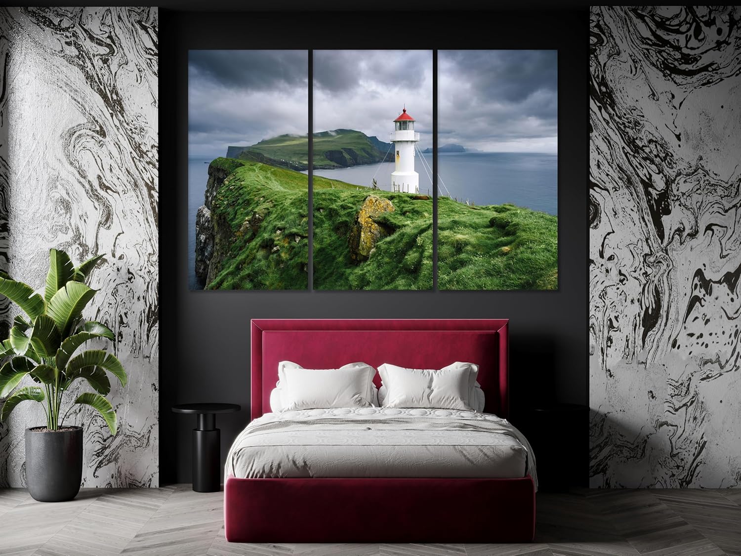 Nature Wall Art Prints - Ocean Forest Mountain Lake Canvas Landscapes - Small to Extra Large Living Room Bedroom Kitchen Bathroom Décor (Stormy Sky Lighthouse, 28L" x 41W")
