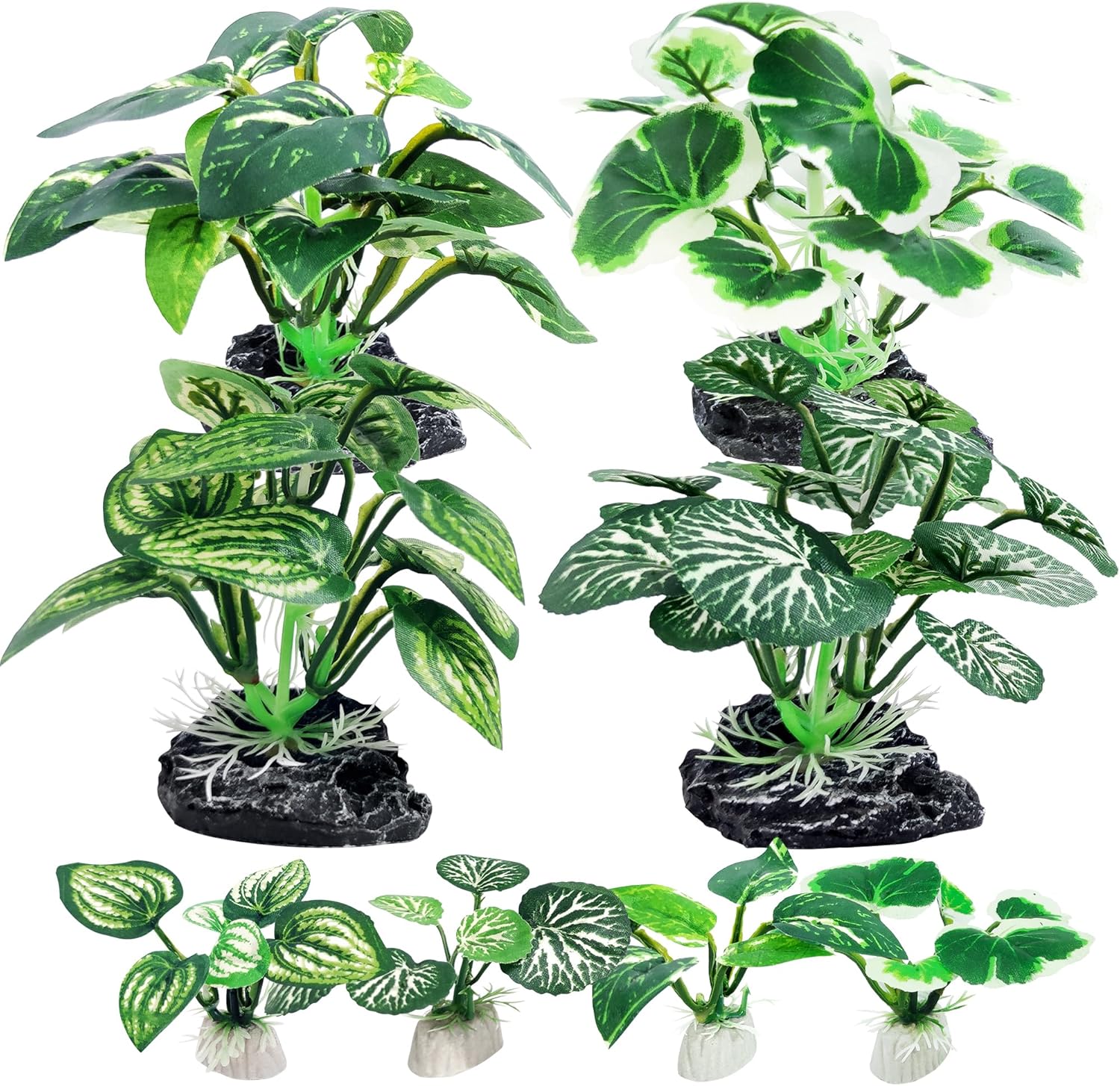 • Material: The aquarium plastic plant is made of soft and healthy materials, there will be no discoloration and safe to water and fish; Each plant has its own ceramic base, which is heavy and firm, so those plants will not float around in the aquarium