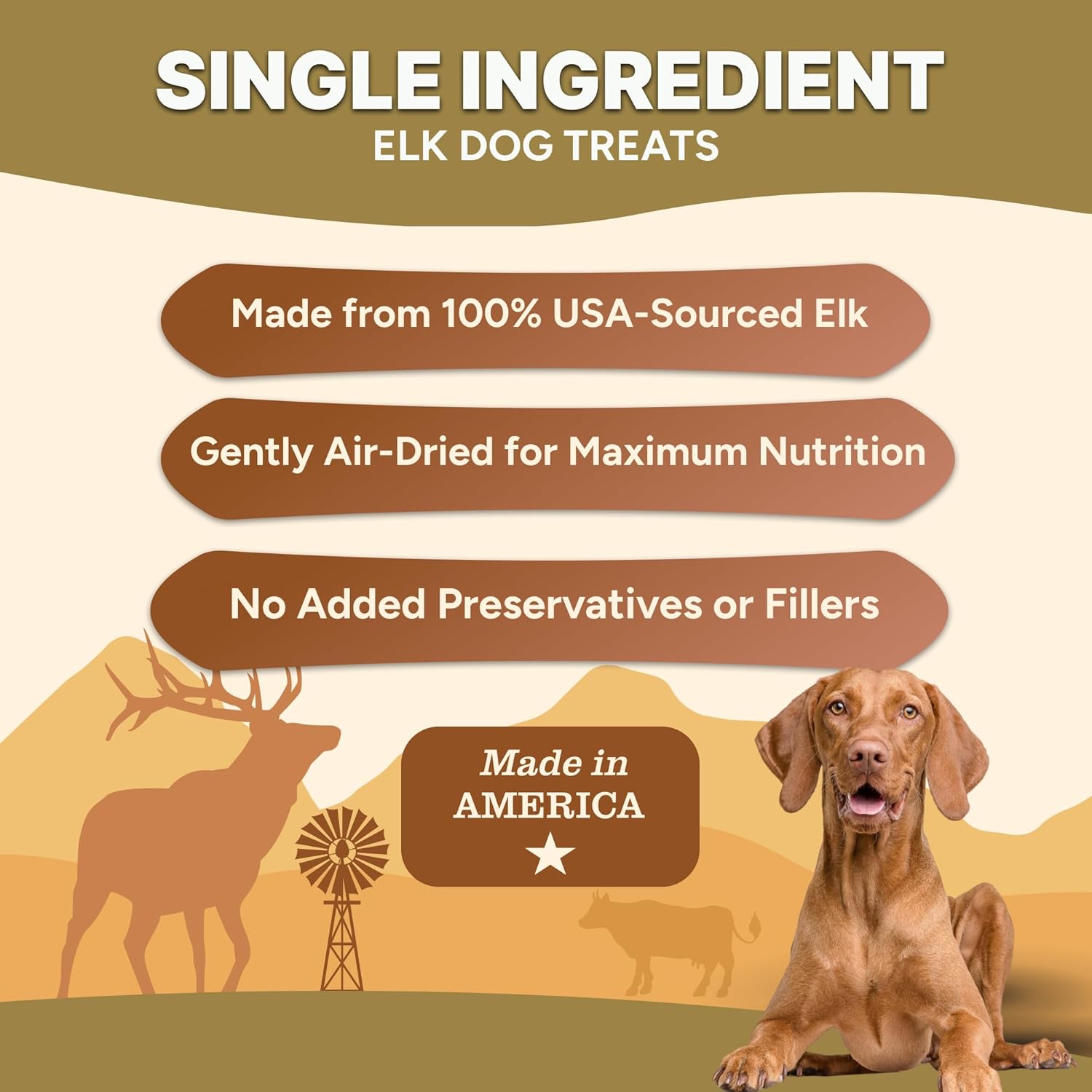 - SINGLE INGREDIENT ELK DOG TREATS: Made with 100% real elk meat and nothing else. These natural dog treats are grain-free, gluten-free, and perfect for dogs with sensitive stomachs or food allergies.