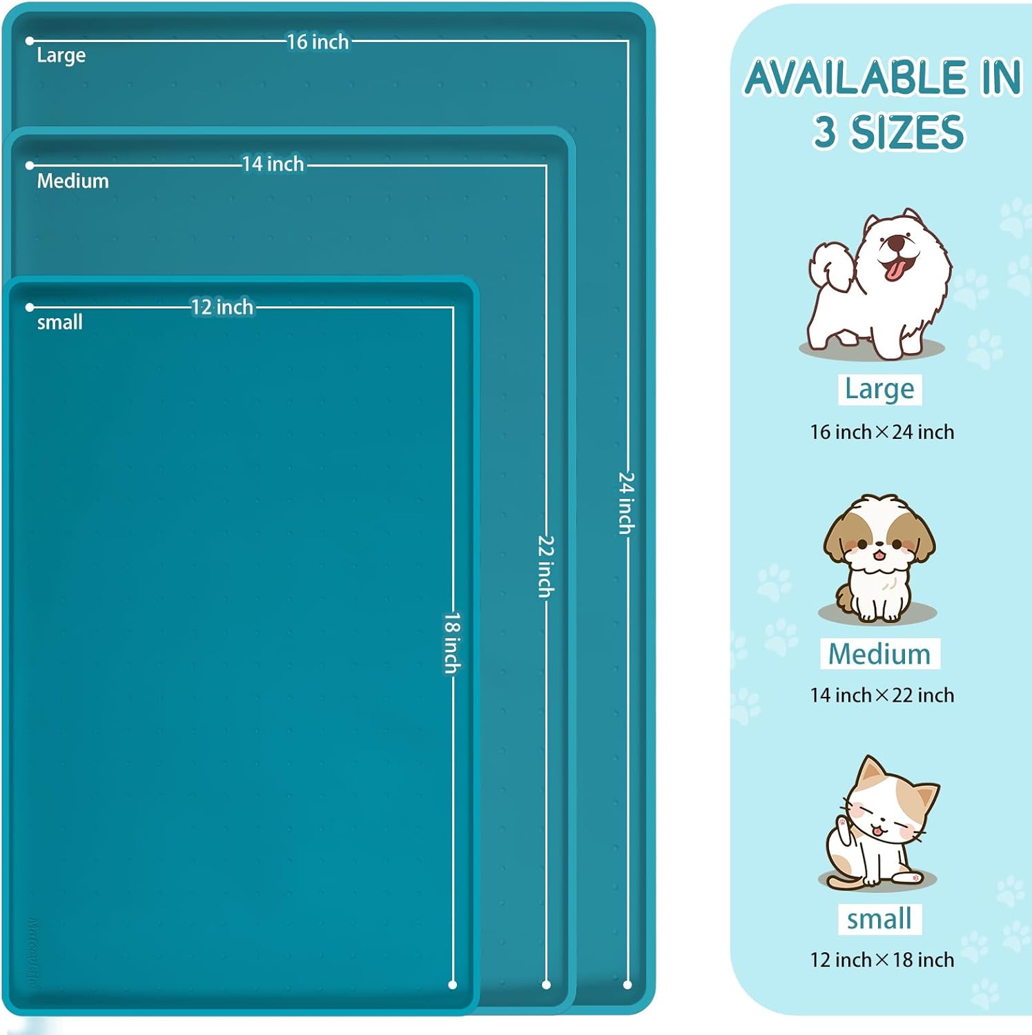- Safe & Less Mess: Our dog water mat and small pet food mats for floor are made of 100% premium food-grade silicone and are safe for pets. The large silicone mat for dog bowls can be easily rolled up and conveniently carried, which is great for travel. This durable silicone dog food mat for floors waterproof is designed to prevent spills from reaching your floors and causing potential damage. Your puppy will have a more enjoyable mealtime experience with these cat food mats for indoor cats