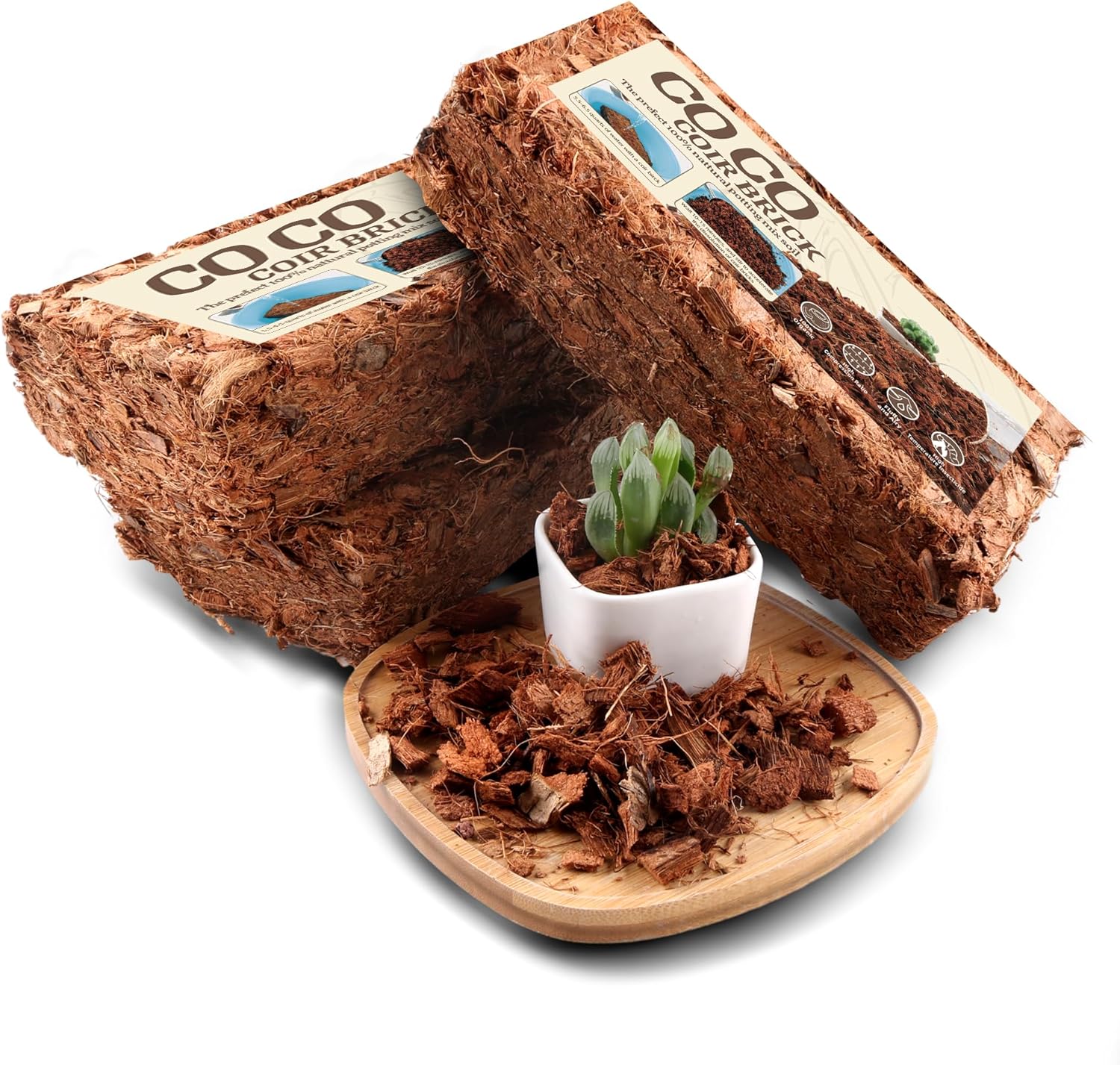 • [100% NATURAL & ORGANIC COCONUT CHIP]: Our coco chips bricks is made from the coconuts husk, which are a natural and sustainable resource. It is providing a natural and eco-friendly growing medium for your plants making coconut husk chips an eco-friendly choice for your gardening needs. As well landscaping, reptile bedding, terrarium bedding, and ground covering.