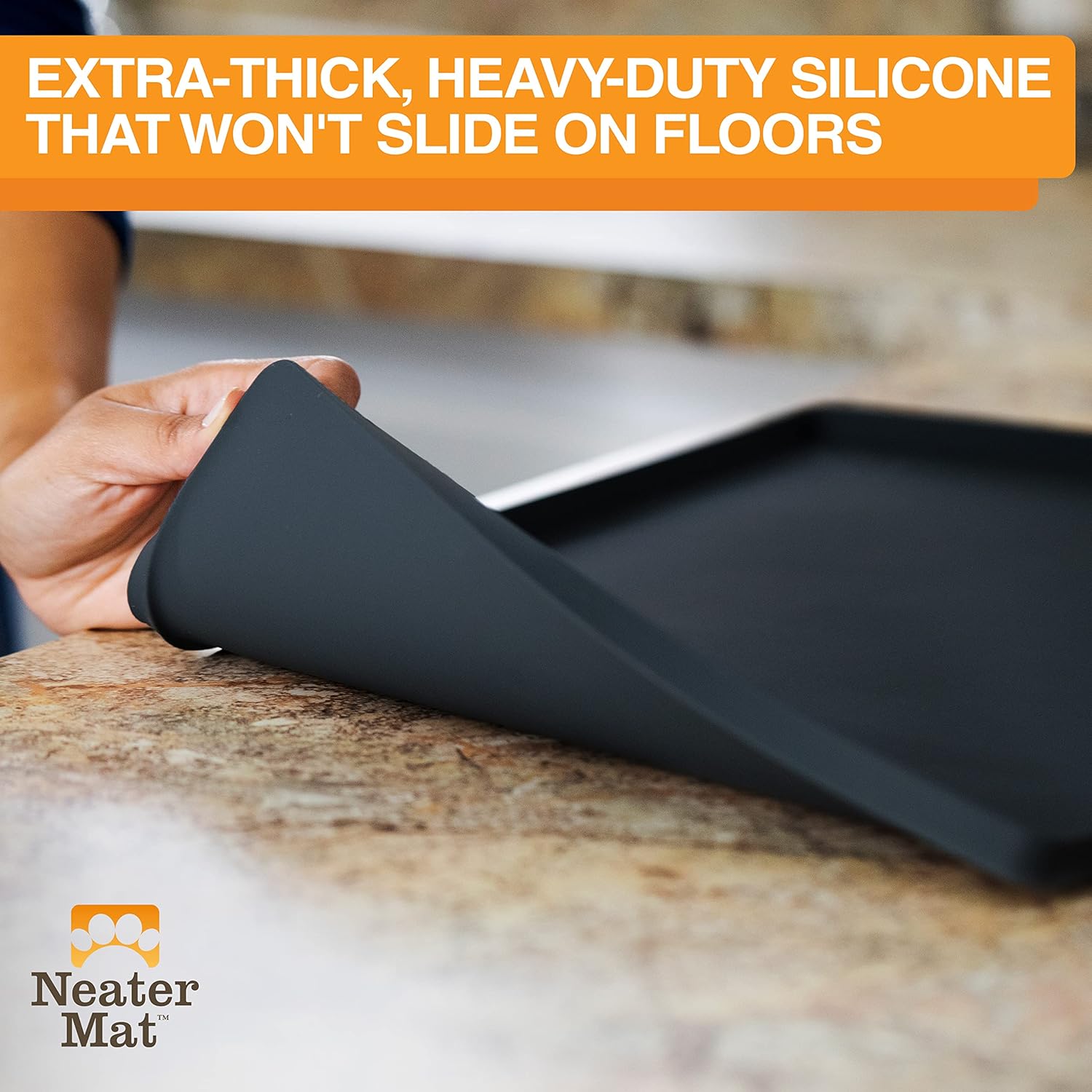 Neater Pet Brands Neater Mat Pet Mats for Food and Water, Cat & Dog Bowl Mat Waterproof Silicone, Feeding Tray, Dog Food Mats for Floors, Placemat w/Raised Edge for Under Bowls, 32" x 24", Black