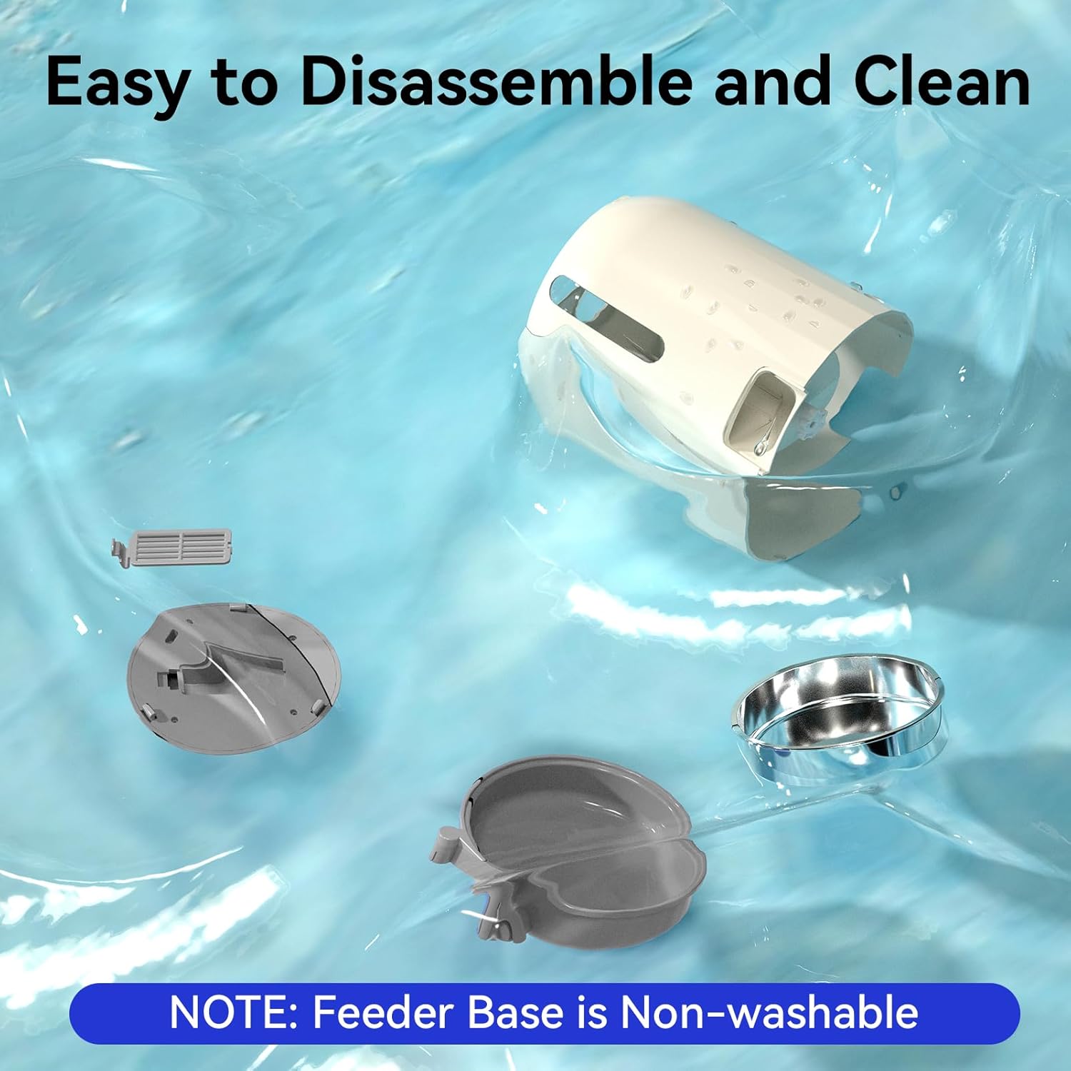 - 【SPLIT AND EASY-TO-CLEAN DESIGN TO PROTECT YOUR PET’S HEALTH】The PAPIFEED cat food automatic feeder adopts a split design. The grain bin and grain outlet channel can be completely disassembled and can be directly rinsed with clean water, completely eliminating sanitary dead corners and effectively preventing bacteria from growing. Its simple and sturdy mechanical structure ensures that the feeder can operate stably and for a long time, providing continuous and reliable food guarantee for your pet.