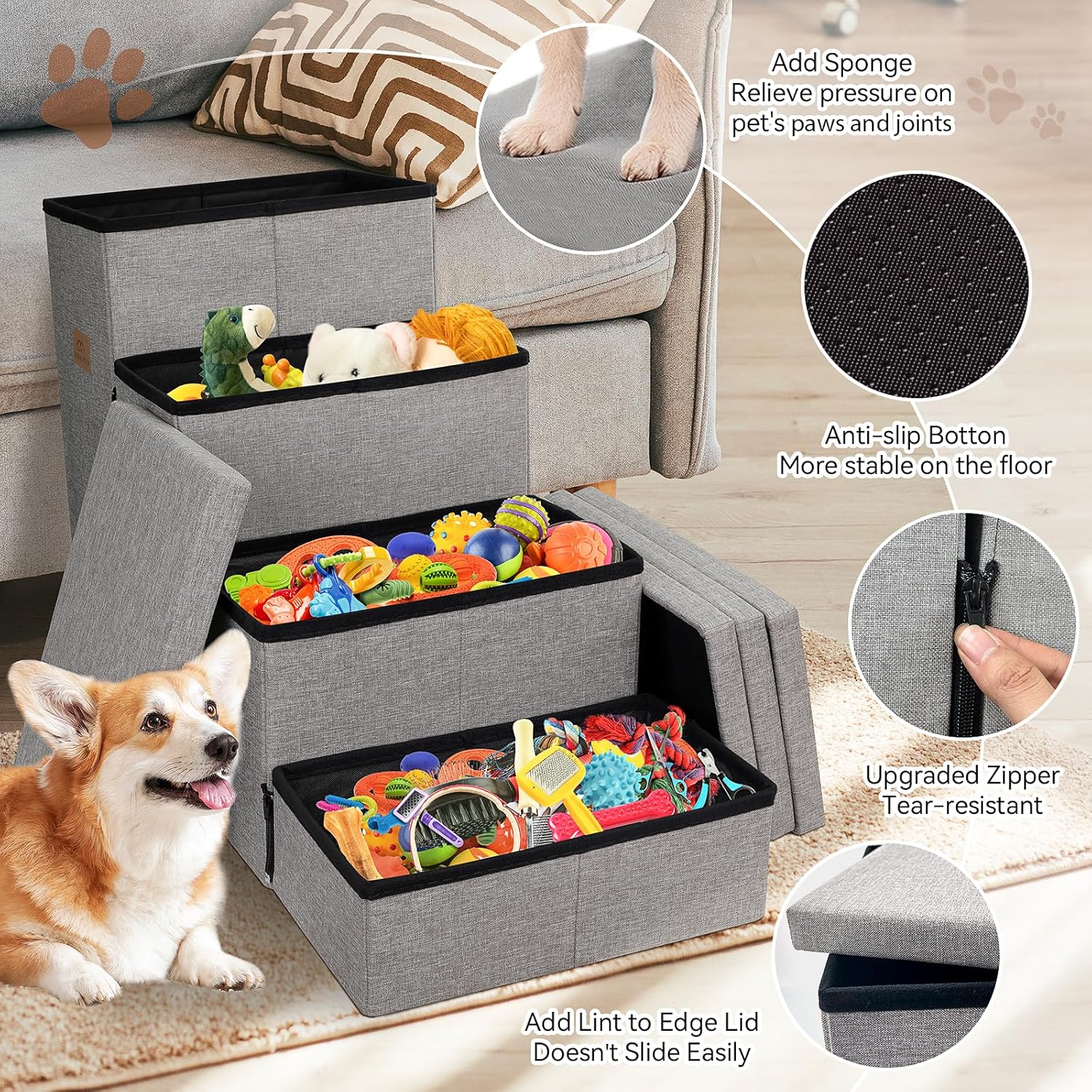 • 3-IN-1 DOG STAIRS AND CONDO: Zerbuger pet stairs not only provide a stable and cozy place for your pet to rest, but also serve as a convenient 106.6QT large storage area for your pet's clothes, toys, or any other supplies. Our pet steps are covered with removable lids, Every steps are designed as storage boxes.