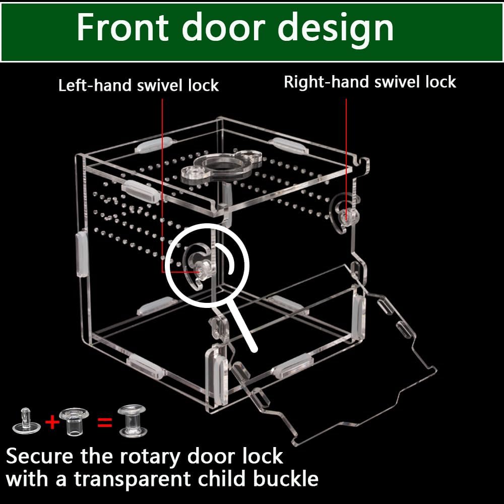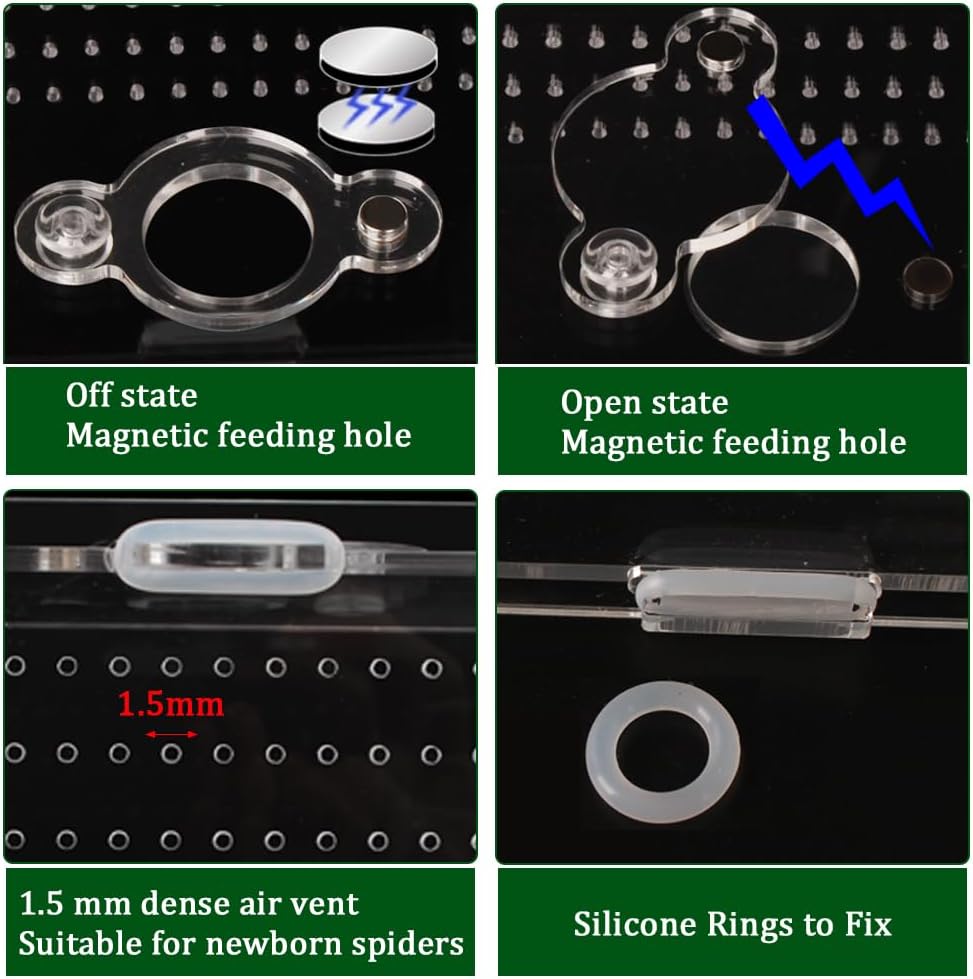 • Unique Design:The tarantula enclosure swivel lock prevents pets from escaping.The top strong magnetic feeding port,convenient for the owner to feed the pet