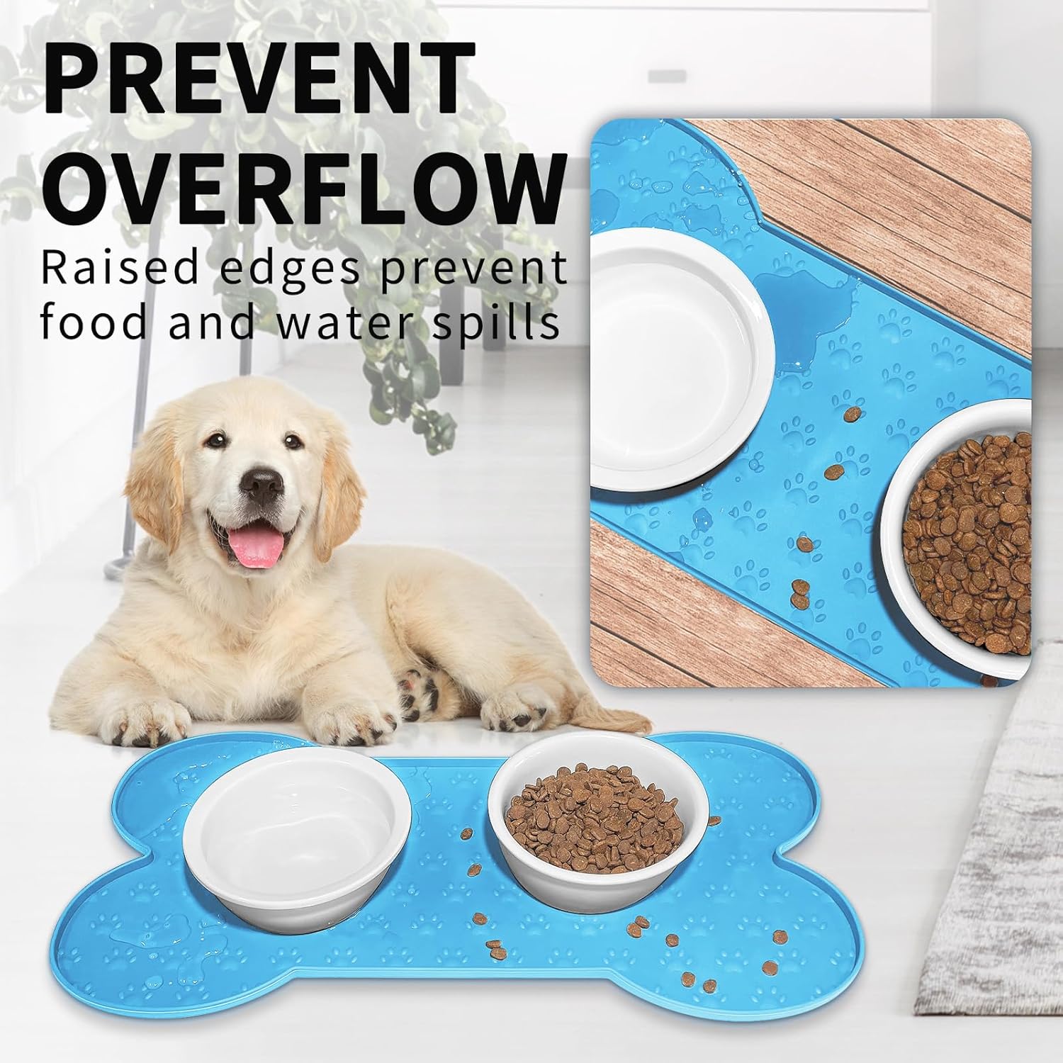 - Health Silicone Material - This pet bowl mat is non-toxic, and non-allergenic, protecting the health and safety of your pet's feeding. 19.4" x 9.8" holds two regular bowls, perfect for small to medium-sized dogs and cats to enjoy a delicious meal tray.