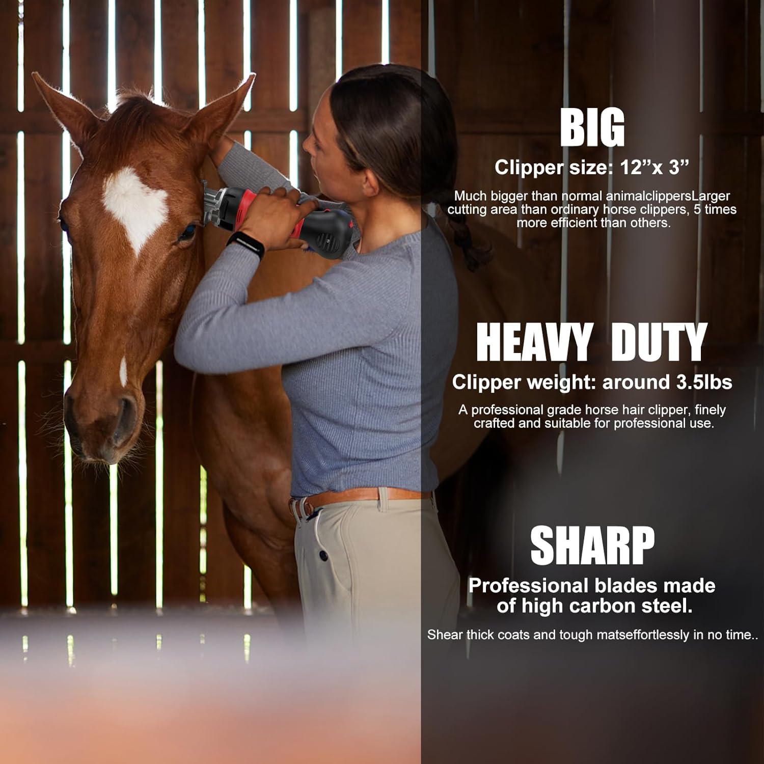 • 【Heavy Duty Horse Clippers】: Designed for trimming horses, goats, llamas, ponies, cows, and even thick-coated donkeys, these electric clippers offer exceptional versatility. With a user-friendly grip structure designed for prolonged use without fatigue, they ensure labor-saving efficiency for all your grooming needs.