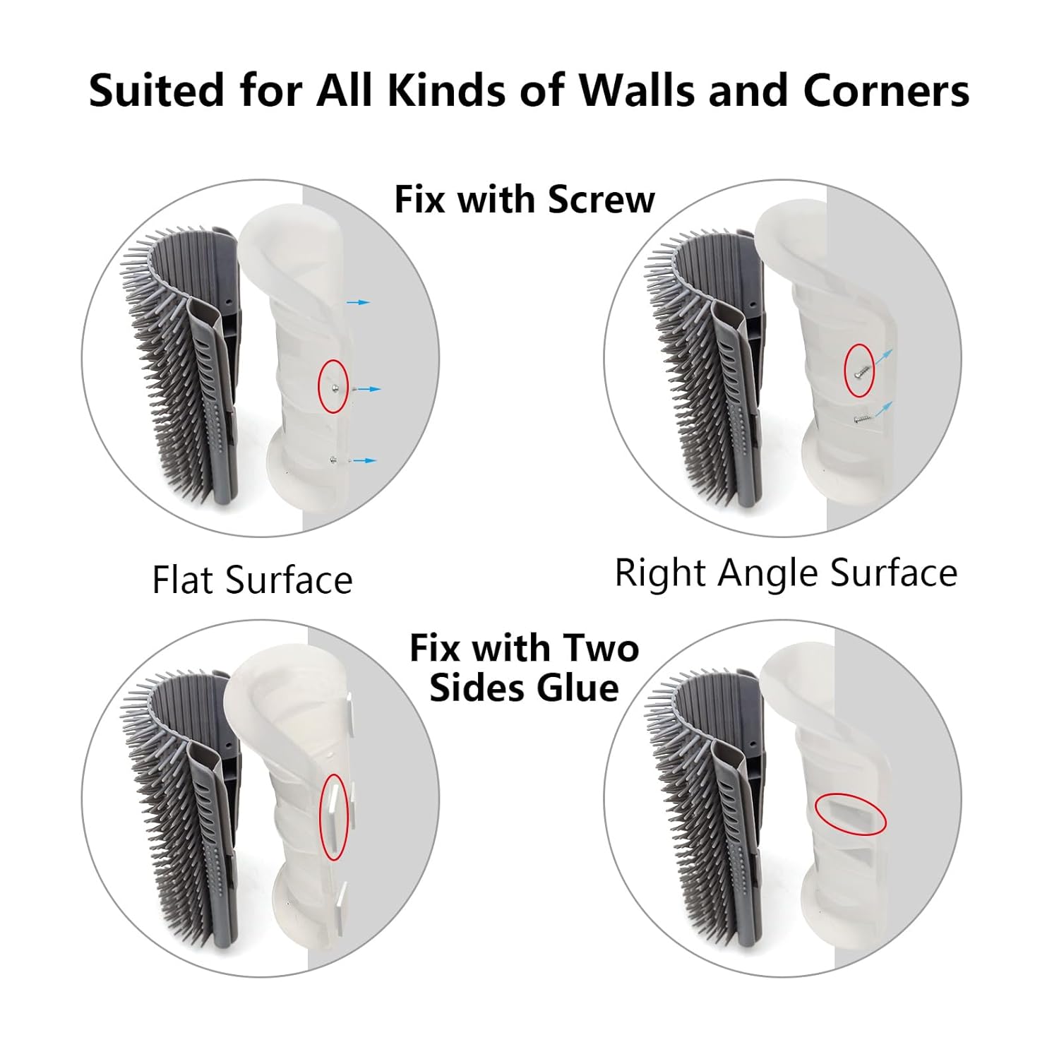 - š Hassle-Free Installation - Suitable for nearly any wall corners, table legs, or cabinet corners, our groomer can be mounted effortlessly onto flat or corner surfaces using the included double-sided stickers or screws. Follow the clear installation steps provided on our package for quick setup.