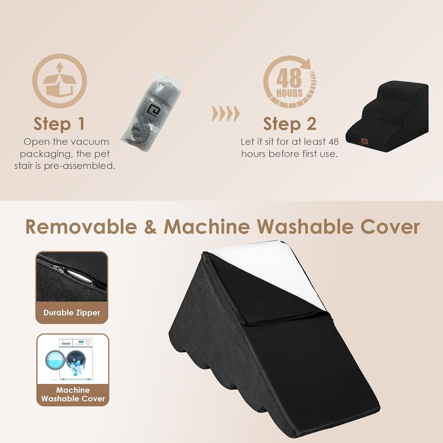 • SPECIFIC AND STEADY DESIGN - 33D density of pure foam make this stair more steady when your pets walk on. The dog bed stairs can provide strong support for pets in the walking process. Low angle slope design can better protect your pet's joints.