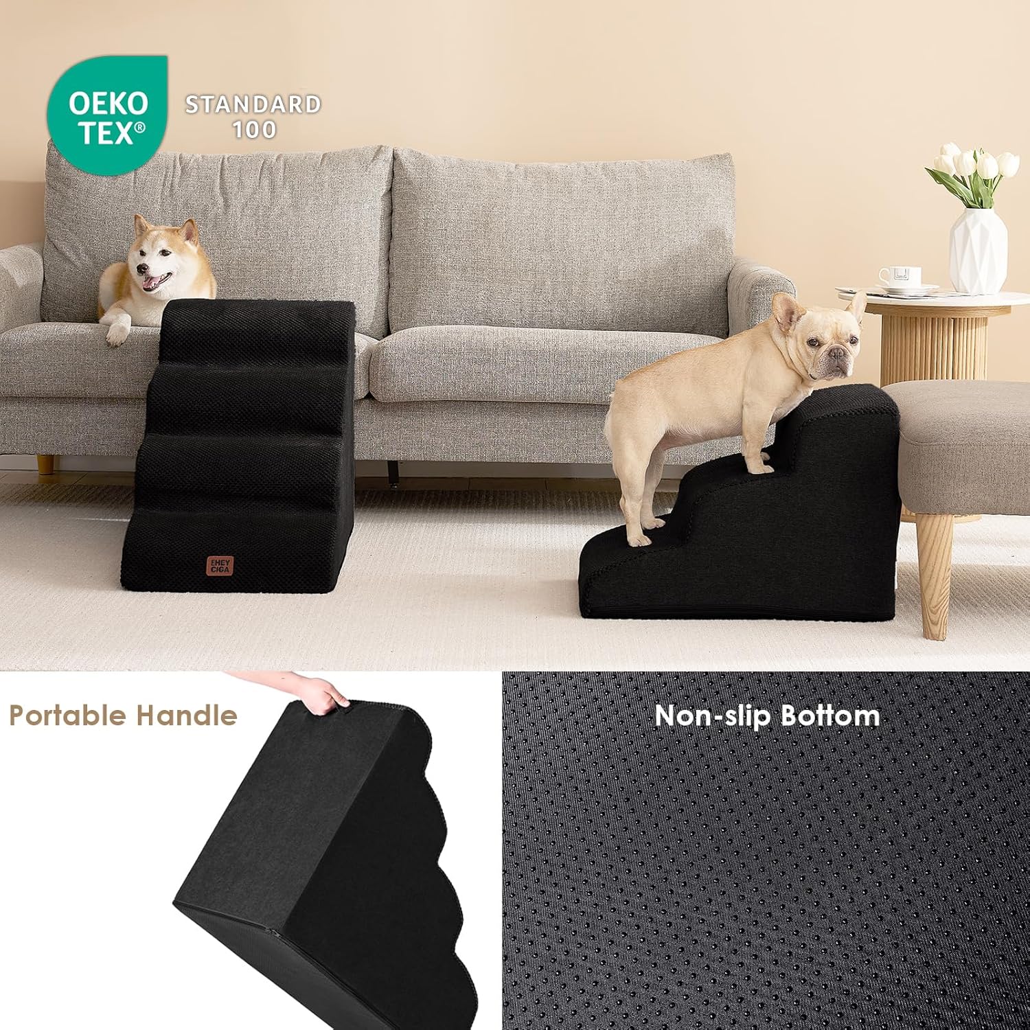 • MULTIPLE STEP SIZES - This dog stair has 2 steps, 3 steps, 4 steps and 5 steps to choose. Our 2-step stairs fits for chair/sofa/bed up to 13inch. 3-step stairs fits for chair/sofa/bed up to 17inch. 4-step stairs fits for chair/sofa/bed up to 21inch. And 5-step stairs fits for chair/sofa/bed up to 24inch.