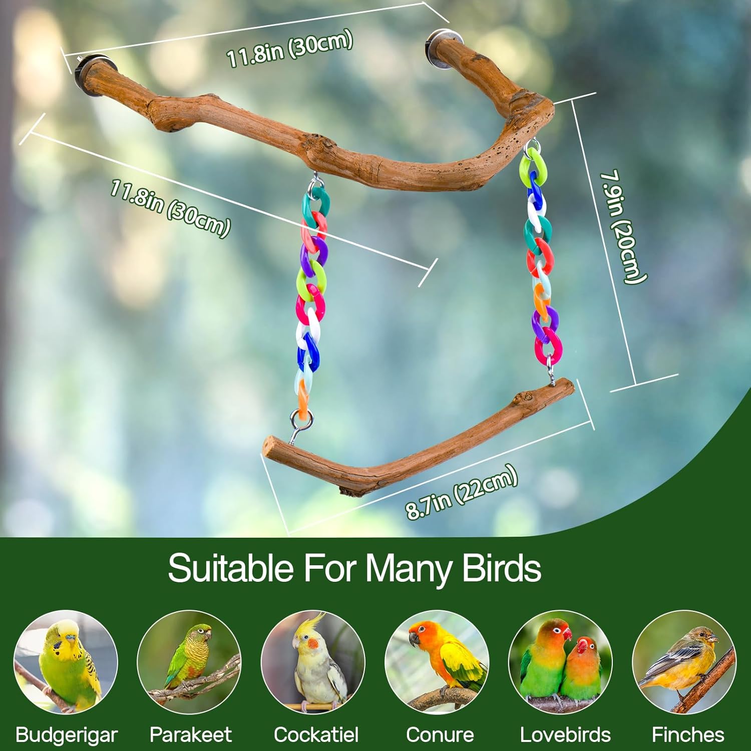 Bird Swing Toys, Standing Bird Perch with Natural Grape Wood, U Shape Hangable Birdcage Accessories, Birds Chewing Toy for Budgerigars, Parakeets, Cockatiels, Conures, Lovebirds, Finches (2Pack)