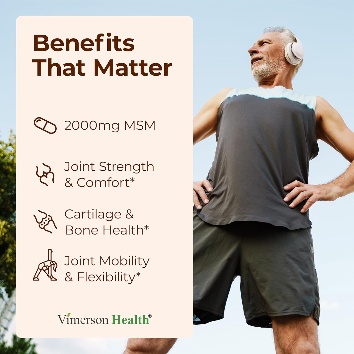 - Product Benefits : Balances Inflammation & Aids Recovery – MSM and Chondroitin help balance inflammation, support post-workout recovery, and reduce discomfort from aging or physical activity, making it ideal for daily mobility support and joint maintenance.*, Formulated for Long-Term Wellness – Made with science-backed ingredients, this supplement is trusted for daily use to help support joint health, flexibility, and overall mobility as part of an aging wellness routine.*, Premium Quality & Trusted Formula – Manufactured in the USA (with globally sourced ingredients) in a cGMP & NSF-Certified Facility. Non-GMO. Designed for busy professionals, active adults, and seniors seeking a high-quality, convenient joint support solution.*, Promotes Bone Strength & Resilience – Designed to support bone health and joint durability, helping maintain strong, flexible joints and skeletal support as part of an active lifestyle.*, Promotes Cartilage & Connective Tissue Health – Strengthens cartilage integrity and joint structure, promoting mobility for active adults, athletes, and seniors who want to maintain movement and flexibility as they age.*, Supports Joint Comfort & Mobility – Helps lubricate joints, promote flexibility, and reduce joint discomfort with a potent blend of Glucosamine, Chondroitin, and MSM, making movement smoother and more comfortable.* Balances Inflammation & Aids Recovery – MSM and Chondroitin help balance inflammation, support post-workout recovery, and reduce discomfort from aging or ph… See more