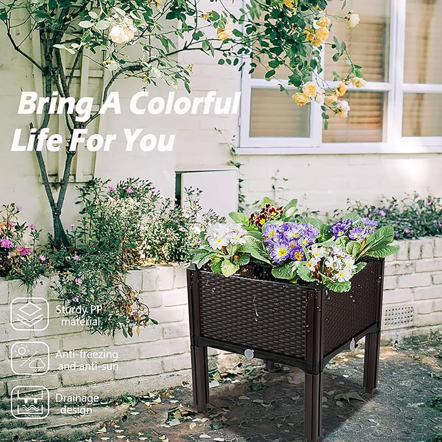 • 🌻【Durable Outdoor Growth Box】Our elevated planter boxes are made of reinforced PP material with a rattan pattern that is durable, lightweight, high load bearing, washable and reusable.