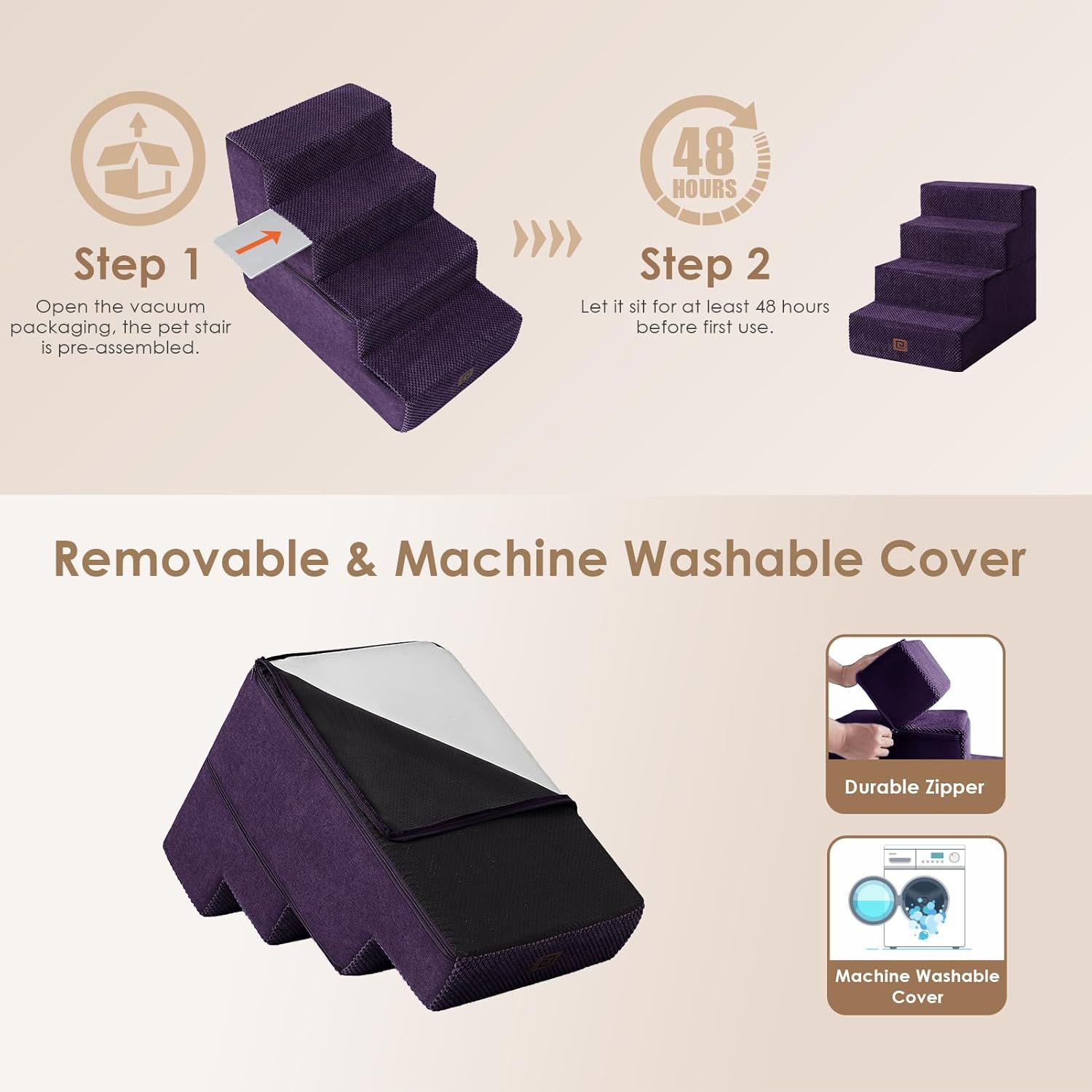 • EASY TO CLEAN - The dog step features a removable and washable cover, which can be cleaned by hand or in the washing machine. This saves you time and makes cleaning incredibly convenient.