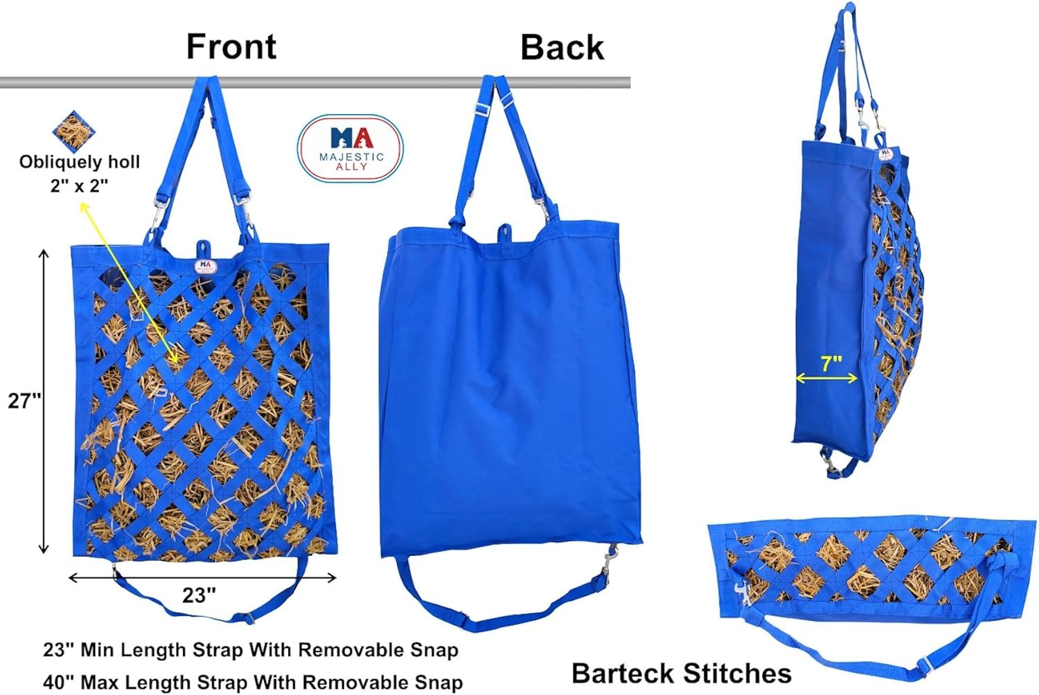 Majestic Ally Premium Nylon Hay Bag for Horses and Livestock, Simulates Grazing, Slow Feeding, Heavy-Duty PP Webbing,Quick-Adjust Straps, Small Hole for Digestion, Multiple Colors (Red)
