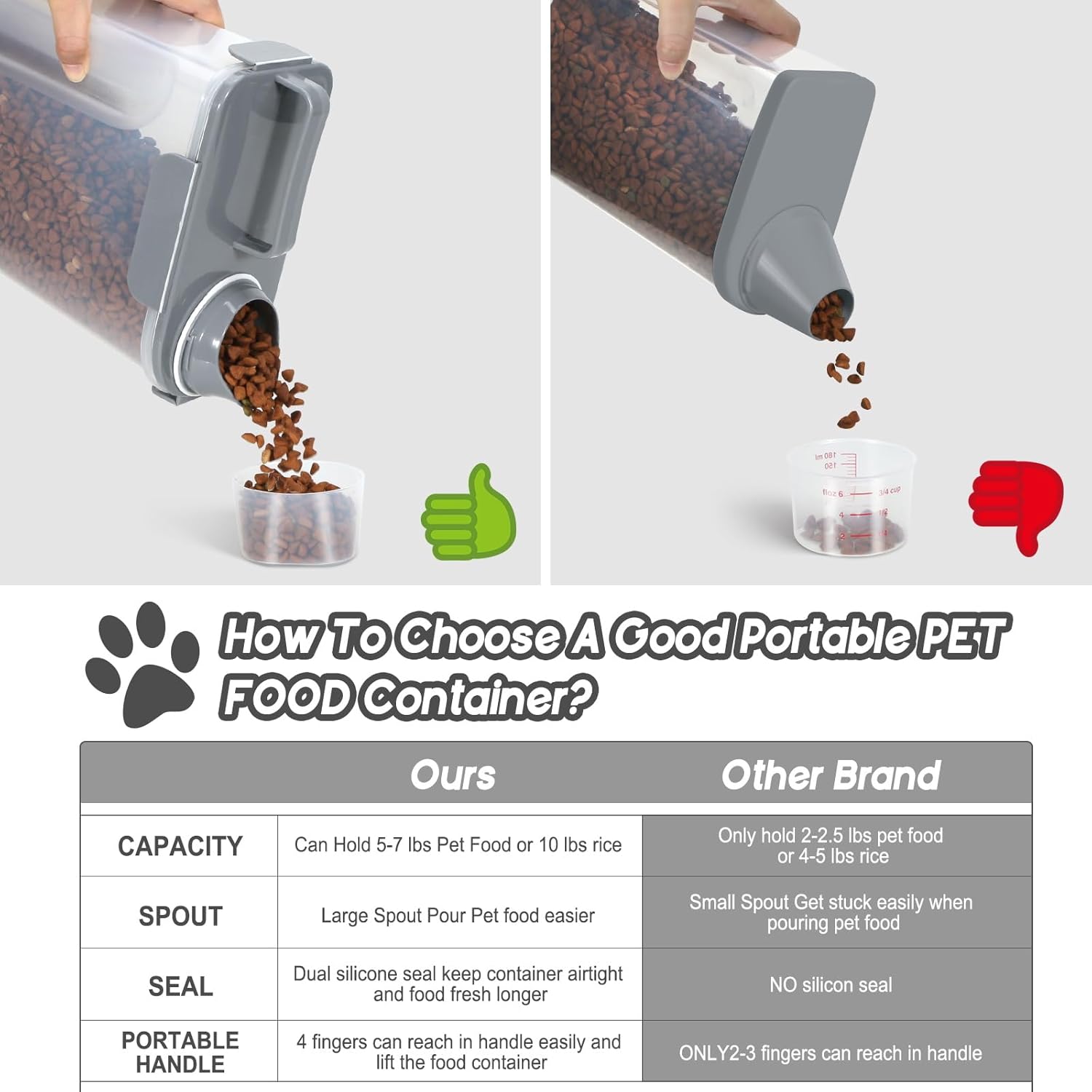 - WHAT YOU GET? : The dog food storage container comes with a 1-pack airtight pet food storage container with a clear measuring cup and an upgraded large spout for easy pouring of pet food at any time. This dog food storage containers can be a gift The perfect gift for any home.