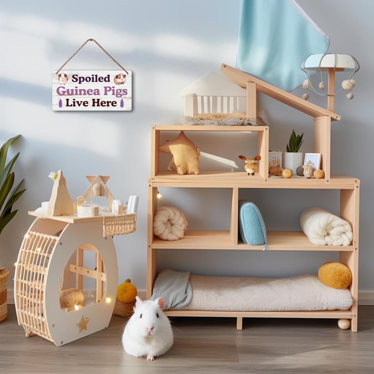 Big Hamster Ball & Guinea Pig Hideout - Stuffed Animals & Accessories for Guinea Pig Cage - 12x6 In Wooden Sign