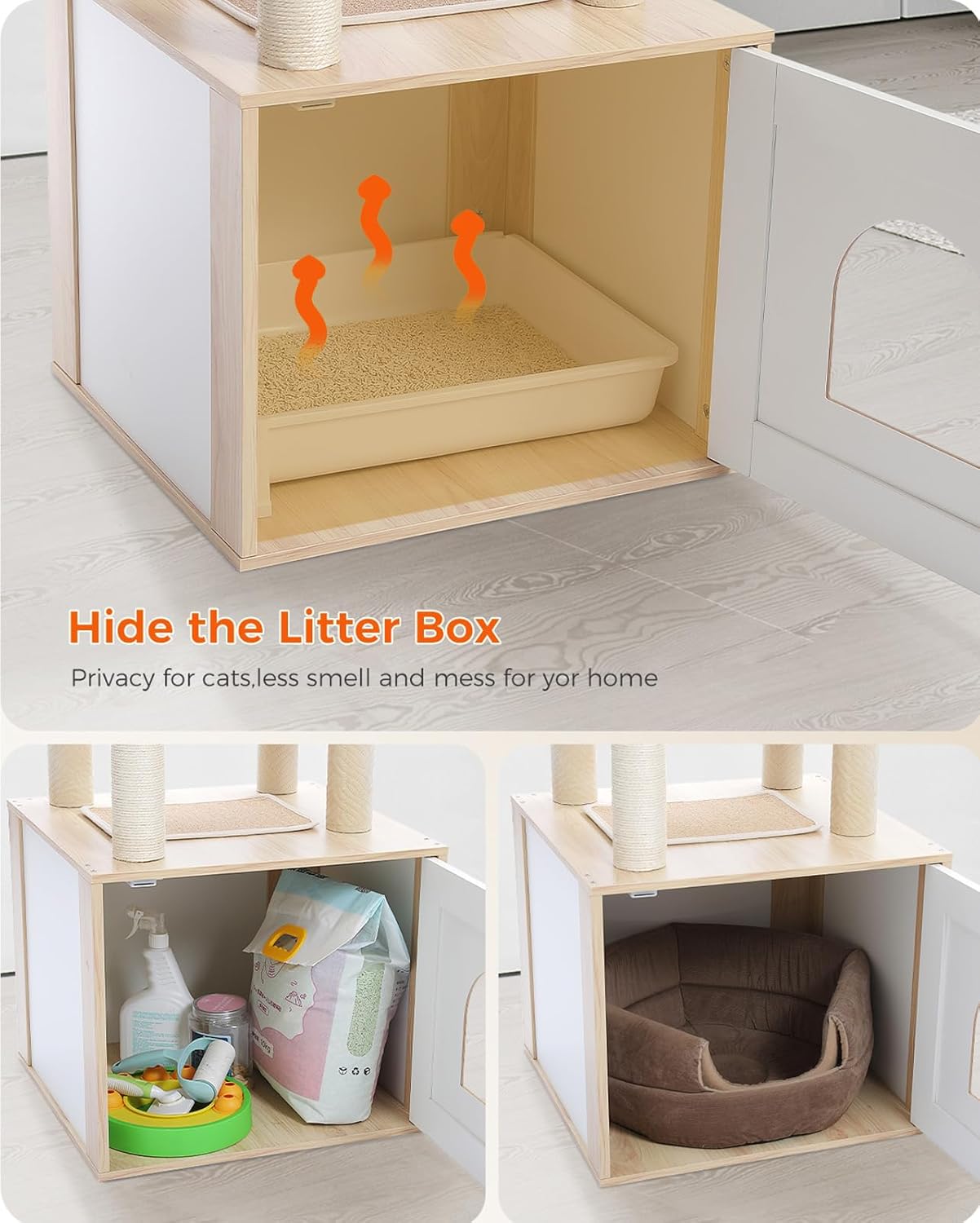 • Space-Saving Litter Box Enclosure Cabinet: Merge functionality and style with our innovative litter box enclosed cabinet.