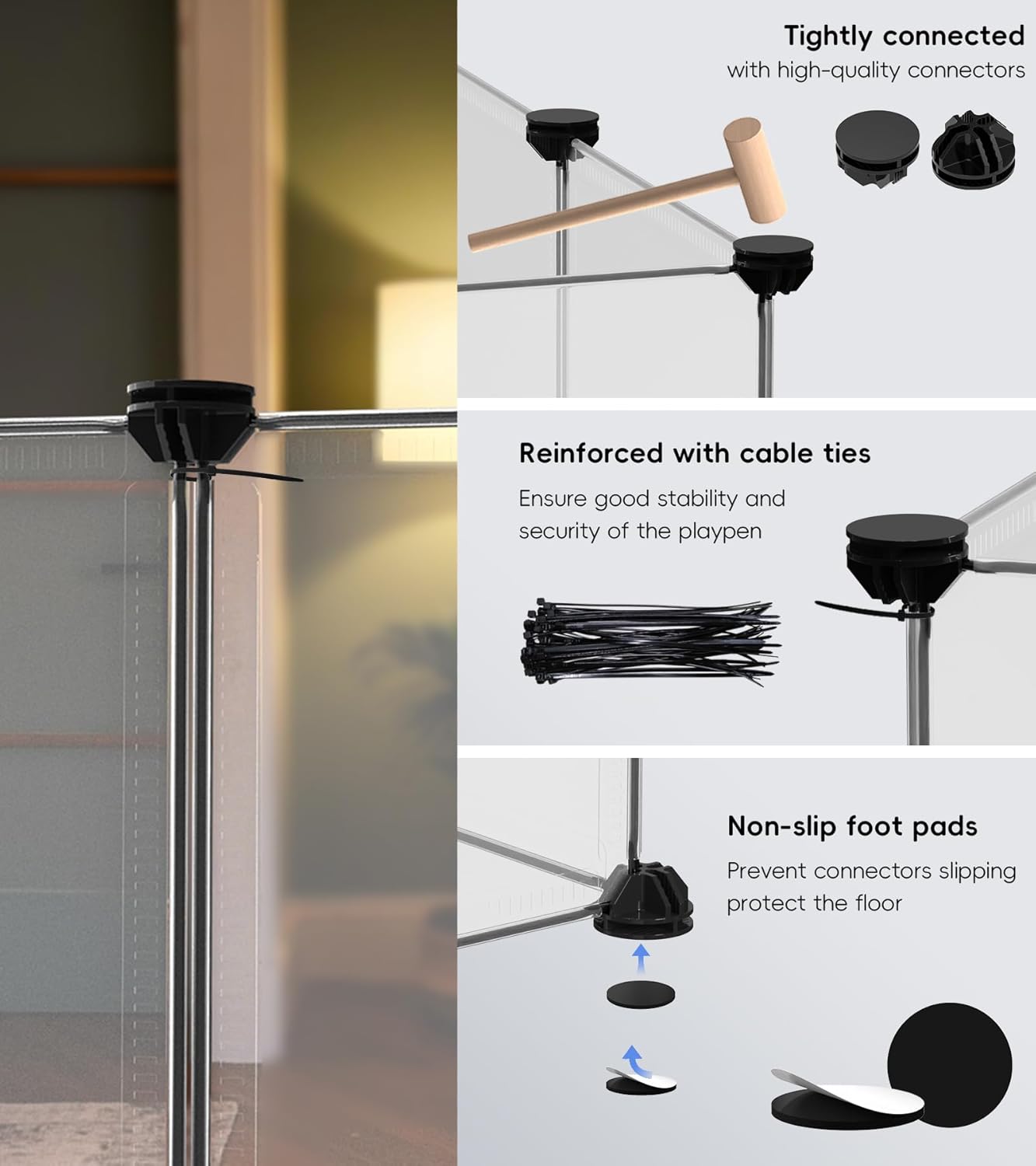 - ššššš¢š„š¢šš² šš§š šš«šØššššš¢šØš§: Equipped with 84 nylon straps to securely fasten the small pet fence, and 24 anti-slip mats to prevent the fence from sliding on the floor, providing a stable play area for your pets.