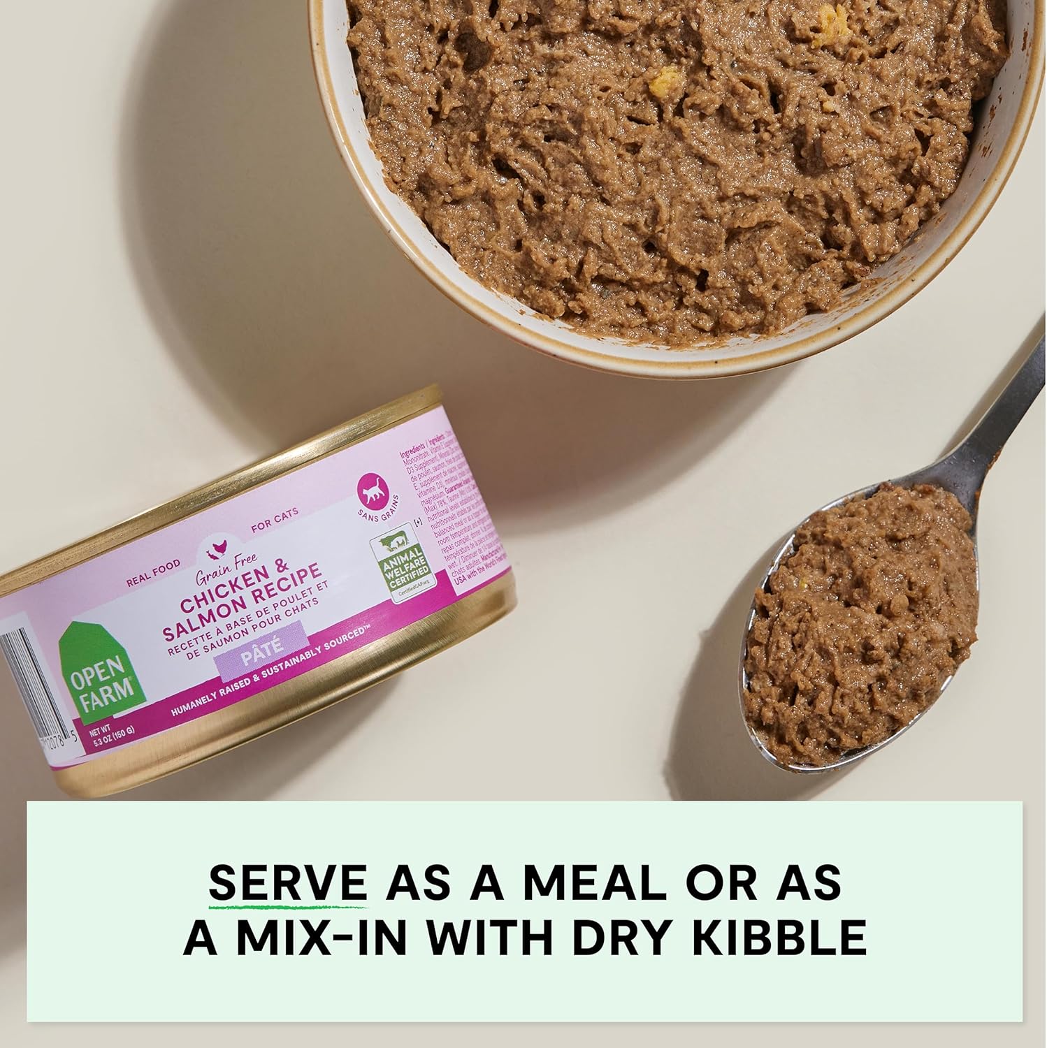Open Farm Canned Cat Food, Paté for Complete & Balanced Nutrition, Grain-Free and Legume-Free Wet Cat Food, Chicken & Salmon Recipe, 5.3oz Cans (Case of 12)