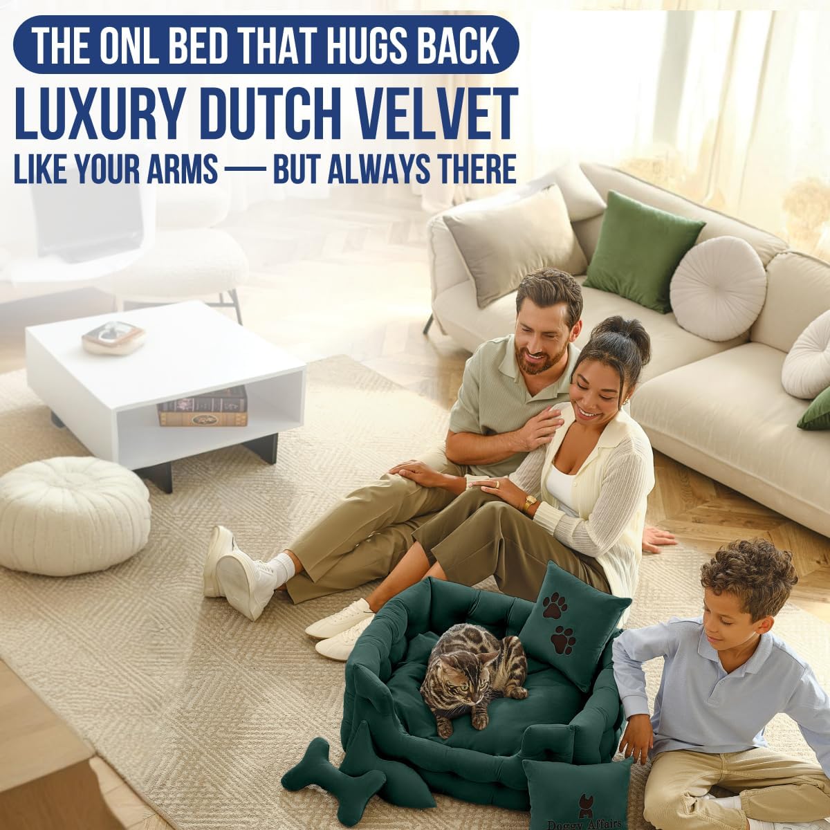 Luxury Cat and Dog Bed Chesterfield – Handcrafted Velvet Throne for Dogs | Joint Support, Calming & Temp-Regulating Comfort | Durable 5+ Years, Anti-Claw, Washable 100+ Times – S, Green