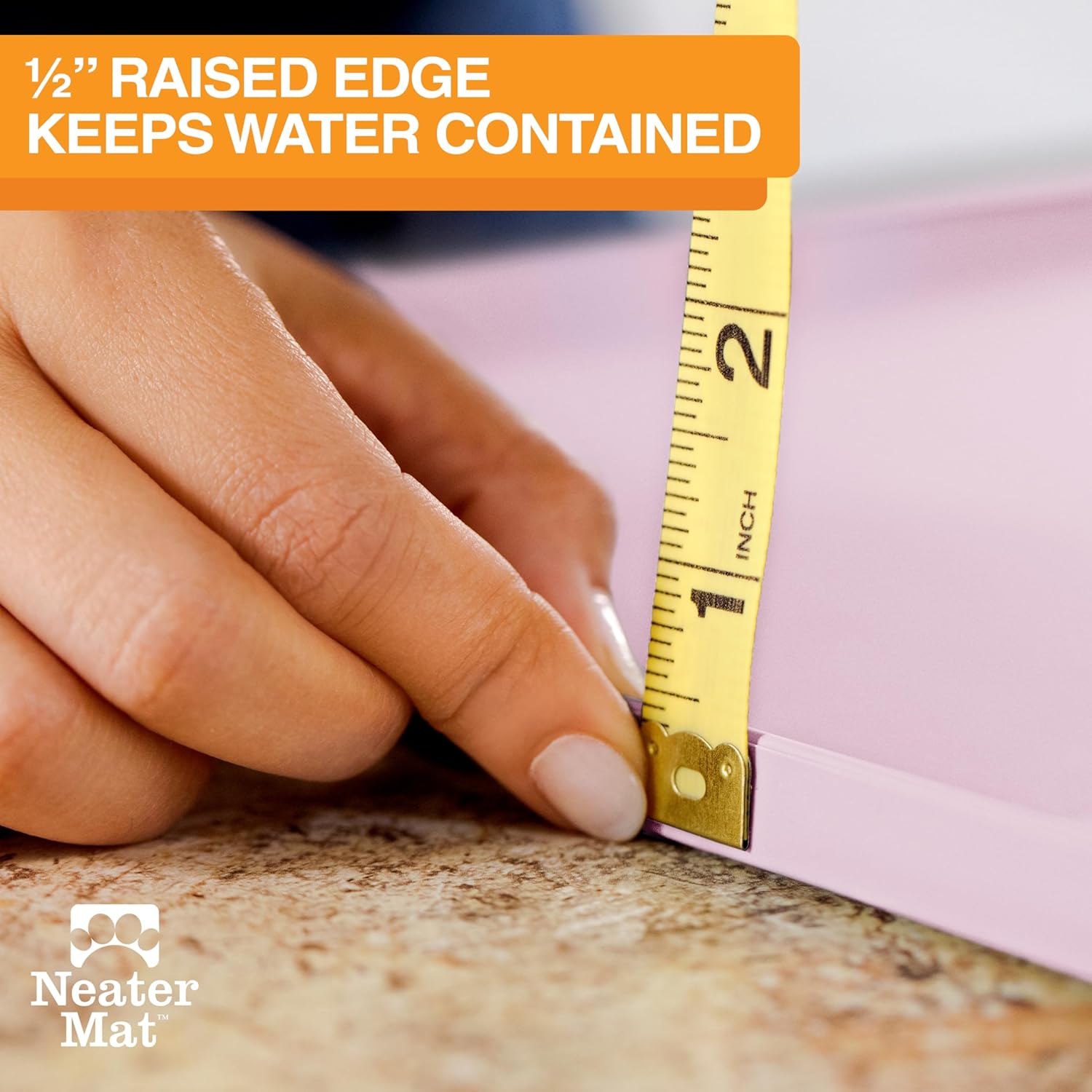 Neater Pet Brands Neater Mat Pet Mats for Food and Water, Cat & Dog Bowl Mat Waterproof Silicone, Feeding Tray, Dog Food Mats for Floors, Placemat w/Raised Edge for Under Bowls, 19” x 12”, Light Pink