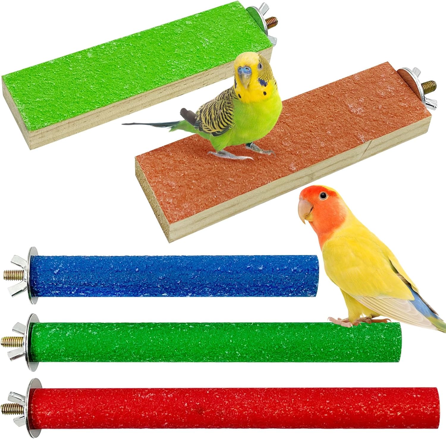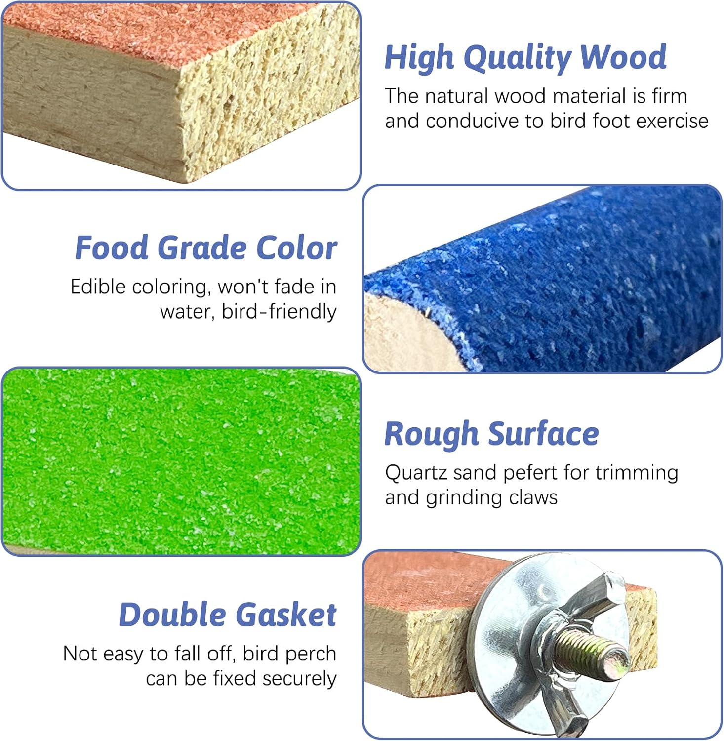 Hamiledyi 5 PCS Bird Perch Stand - Wooden Parrot Perch Stand with Colorful Sand Paw Grinding Stick Trim Beak Wood Platform for Bird Nail Trimming - Cage Accessories for Parakeets & Cockatiel
