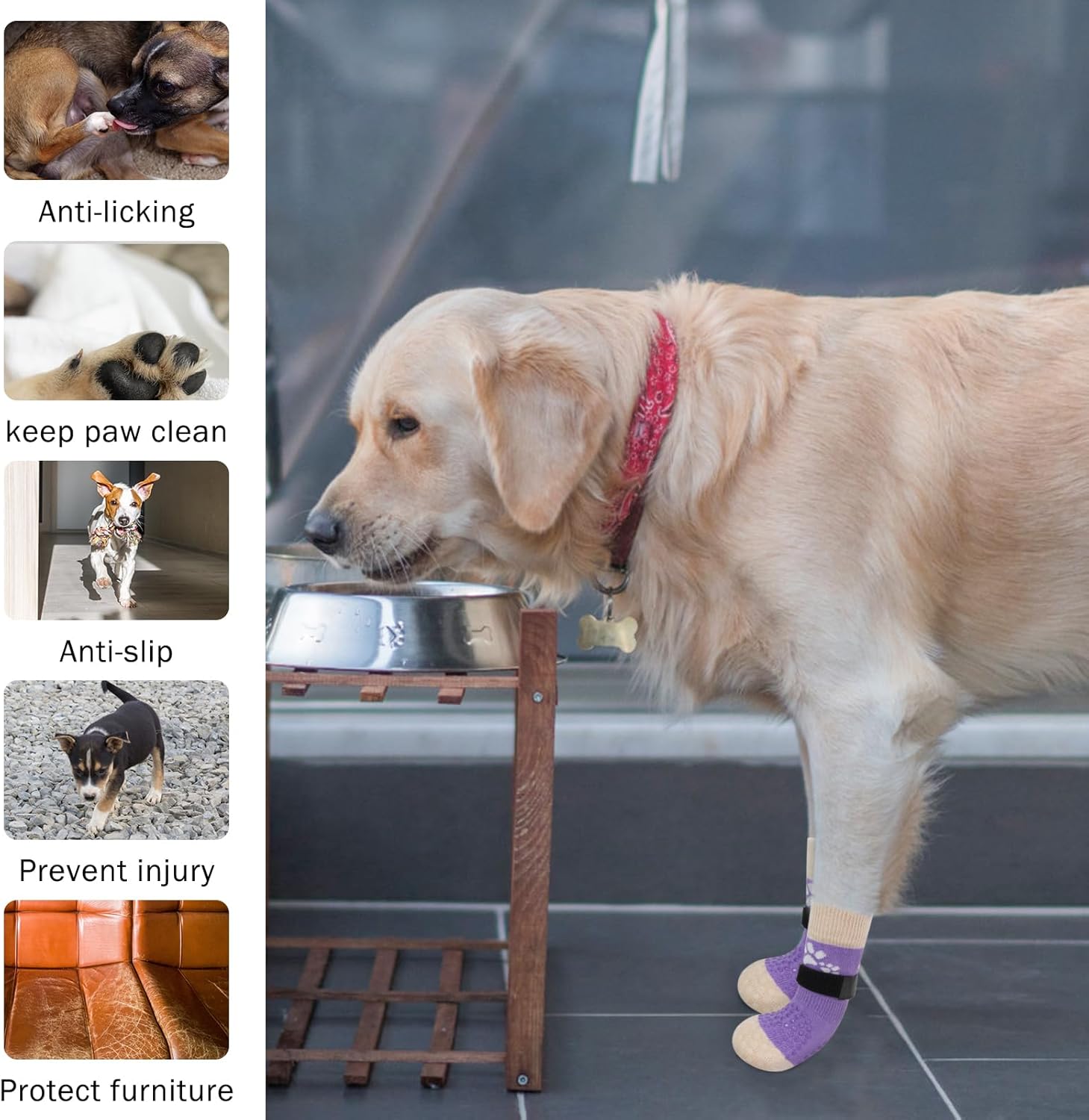 - MULTIFUNCTIONAL MULTI-SITUATION APPLICATION: This dog socks for hardwood floors can provide protection for your dog's paws from hot pavement, heat and other potential hazards in the summer. Wearing our socks also prevents dogs from licking and irritating wounds, further aiding in the healing of foot wounds.