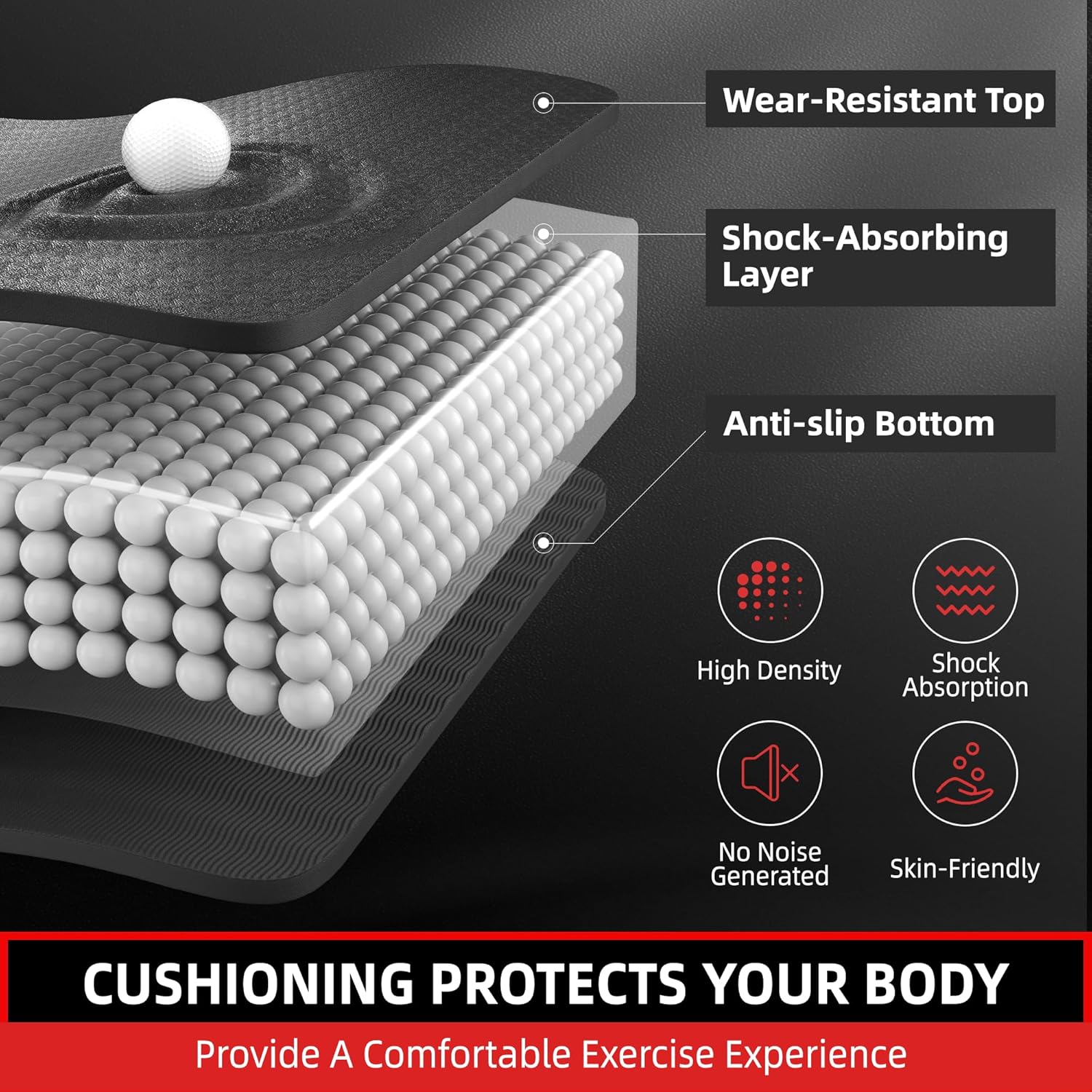 • Double-sided & Anti-slip Texture: The anti-slip texture of the thick yoga mat generates greater friction and better grip. Large exercise mat prevents hands, feet or mats from sliding and losing balance. Thick workout mat gives practitioners a more stable and safe practice environment to focus on posture and breath