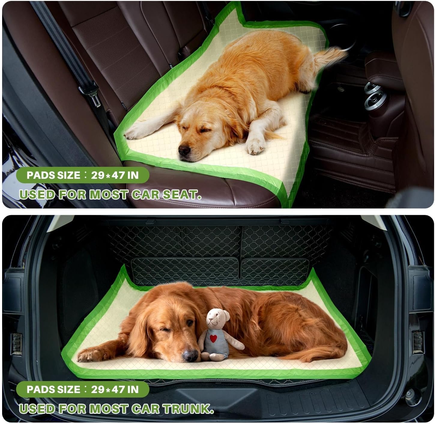 - ăExtra XLarge SizeăExternal 29"W x 47"L (73x 119cm). A great gift for puppies, large dogs, dogs urine, elderly canines, kittens, cats, rabbits, ducks, doggies, and other pets on amazon for pet potty training, aging pet assistance, basic travel carrier, puppy tray, on car, covering water/ food bowl spillage. These can provide you with great convenience at home or outdoorsïŒ