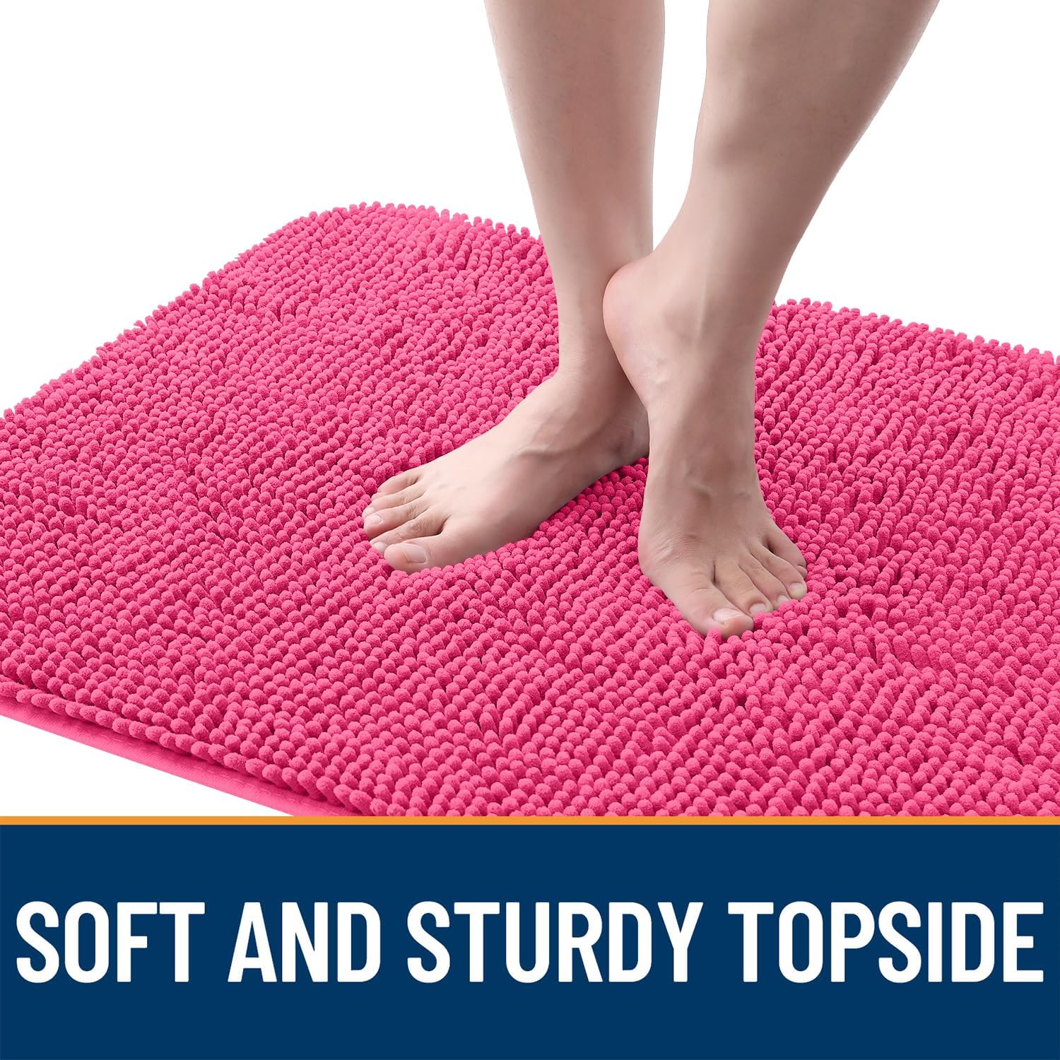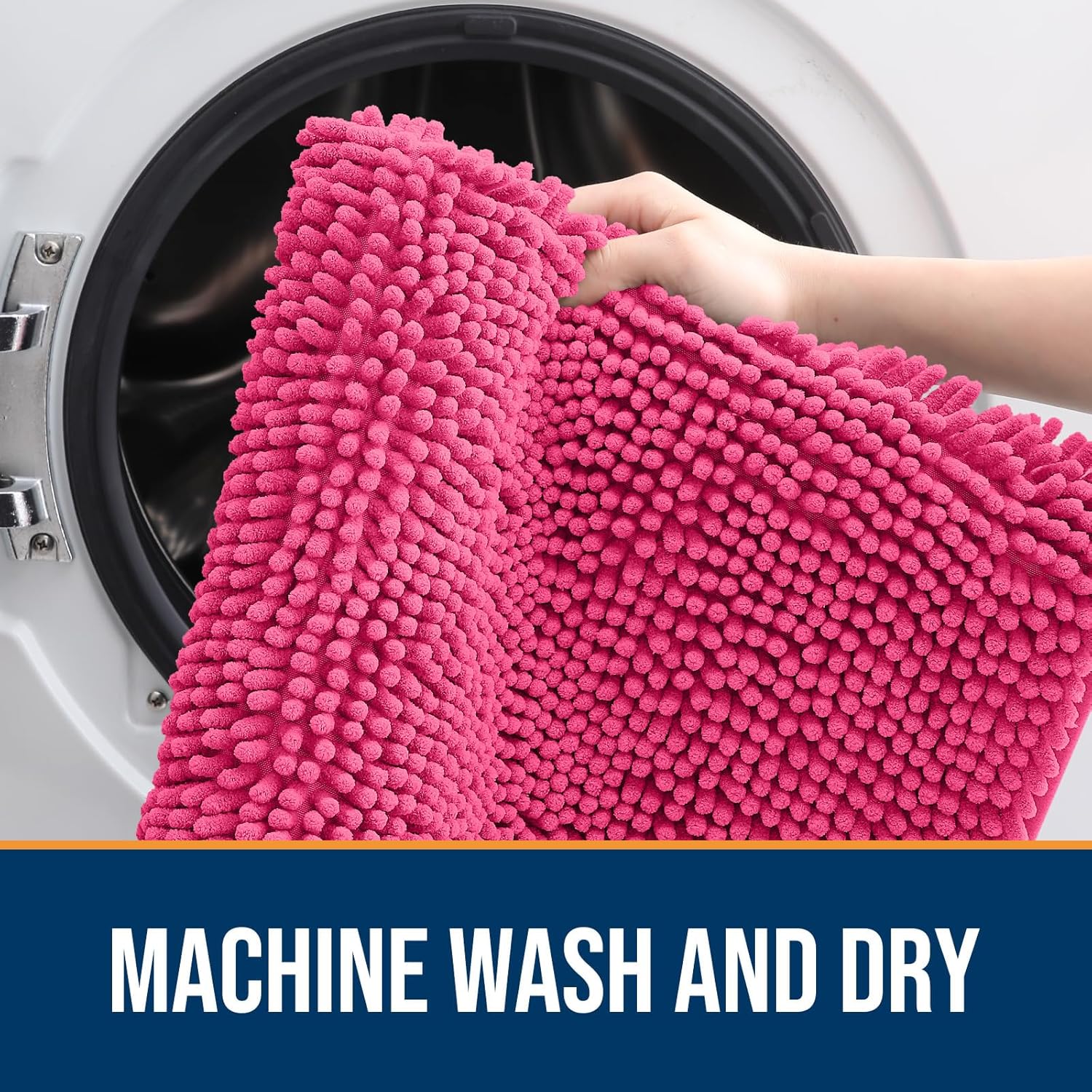 OLANLY Dog Door Mat for Muddy Paws 48x30, Absorbs Moisture and Dirt, Absorbent Non-Slip Washable Doormat, Quick Dry Chenille Mud Mat for Dogs, Entry Indoor Entryway Carpet for Inside Floor, Hot Pink